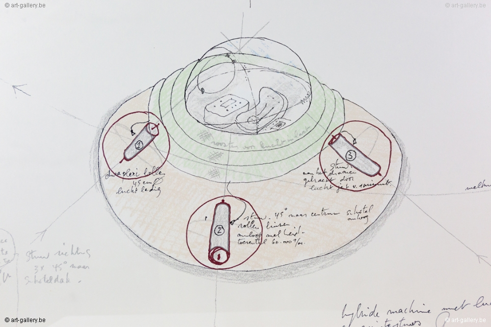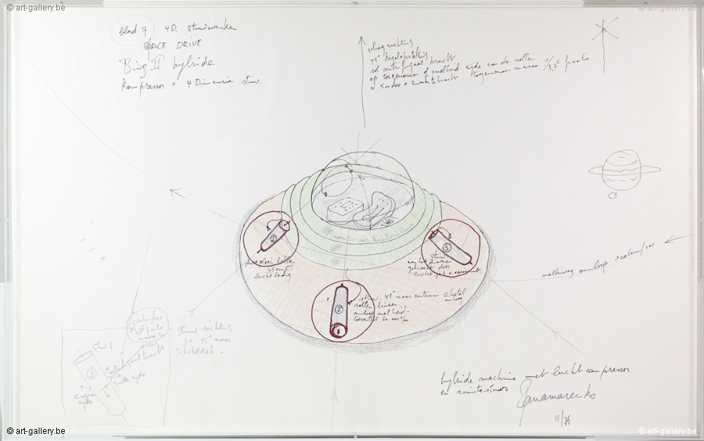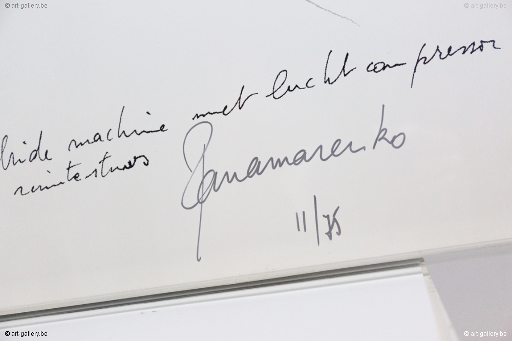 Color screen print by Panamarenko. Signed by hand and numbered on 75 copies. This work was colored by hand. This work was professionally framed in a wooden frame.