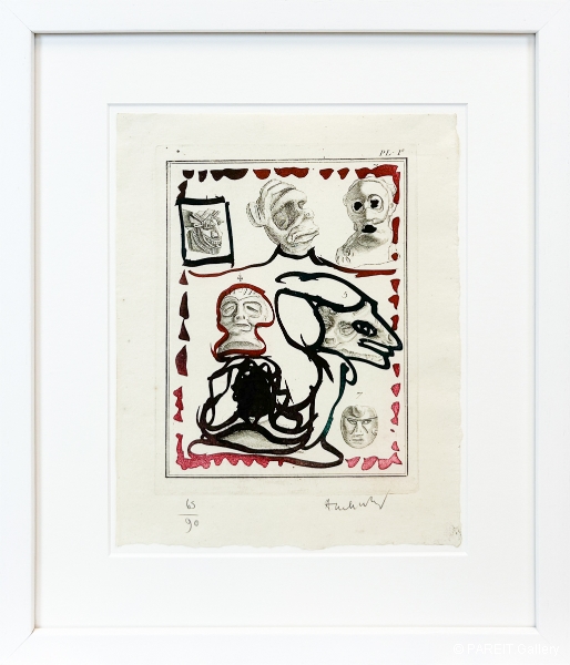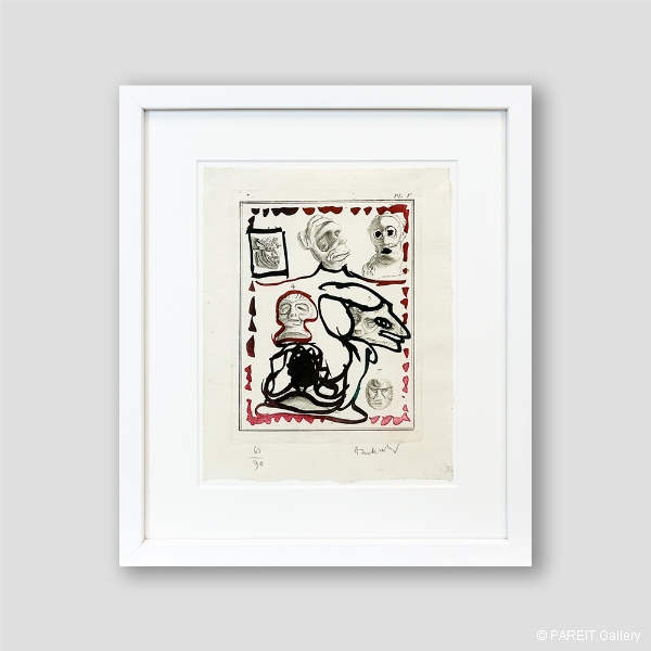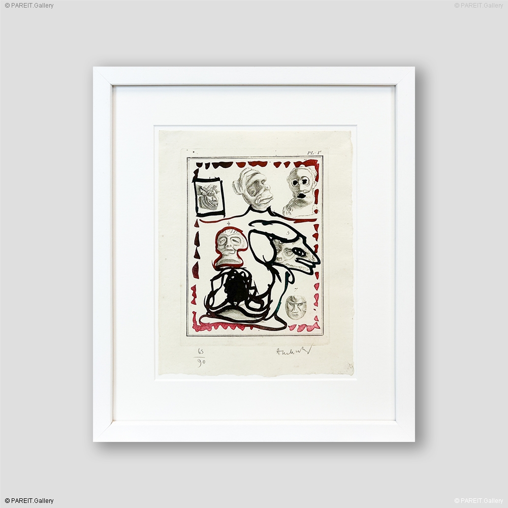 Etch by Pierre Alechinsky. Signed and numbered on 90 copies. The work is framed in anti-reflective museum glass in an white frame.