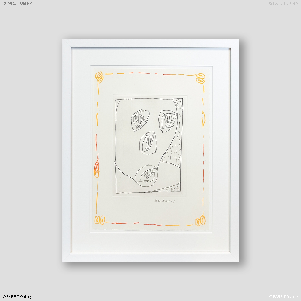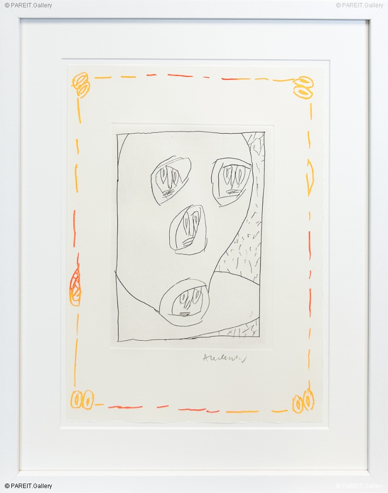 Etch by Pierre Alechinsky. Signed and numbered on 75 copies. The work is framed in anti-reflective museum glass in an white frame.