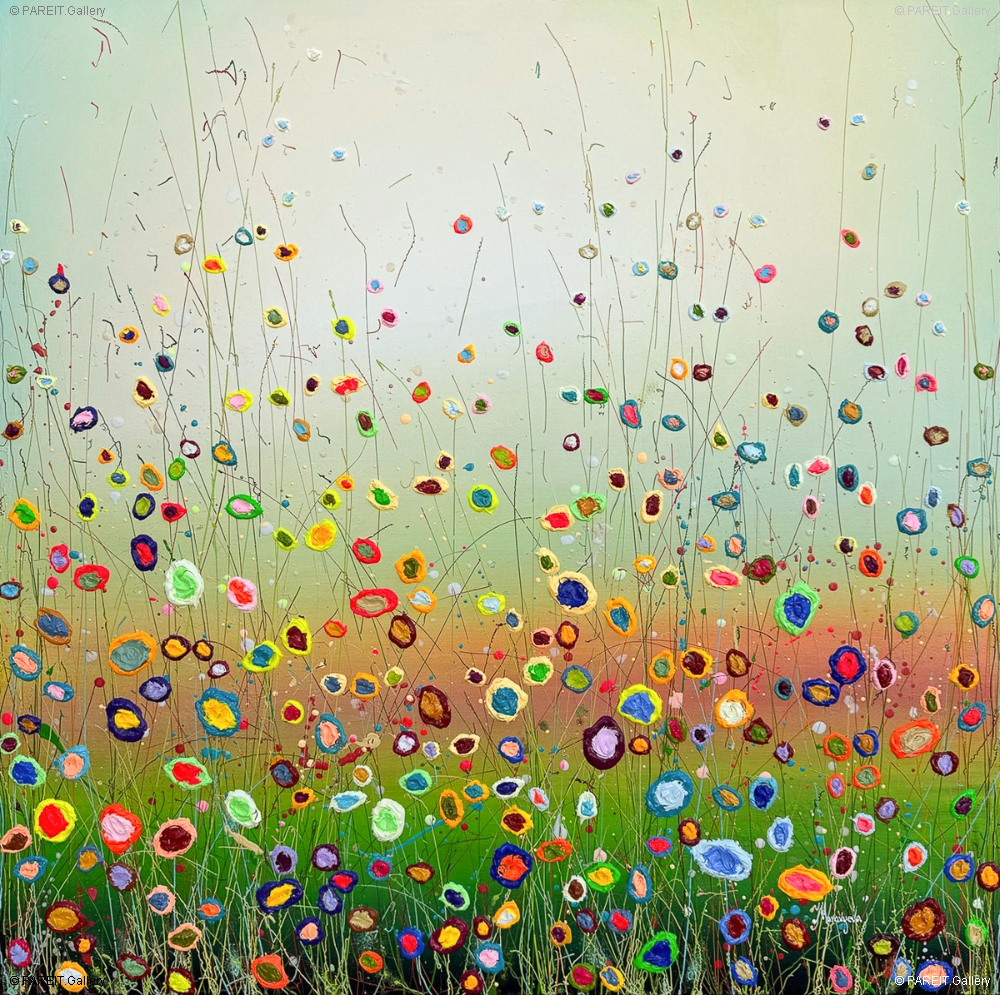 The original painting is thickly set up with acrylic paint and has a beautiful color combination. The playfulness, cheerfulness and vibrant colors that Yulia works with are truly beautiful and worthwhile to come and see for real. The works are stretched on the thick stretcher, which gives the painting even more body.