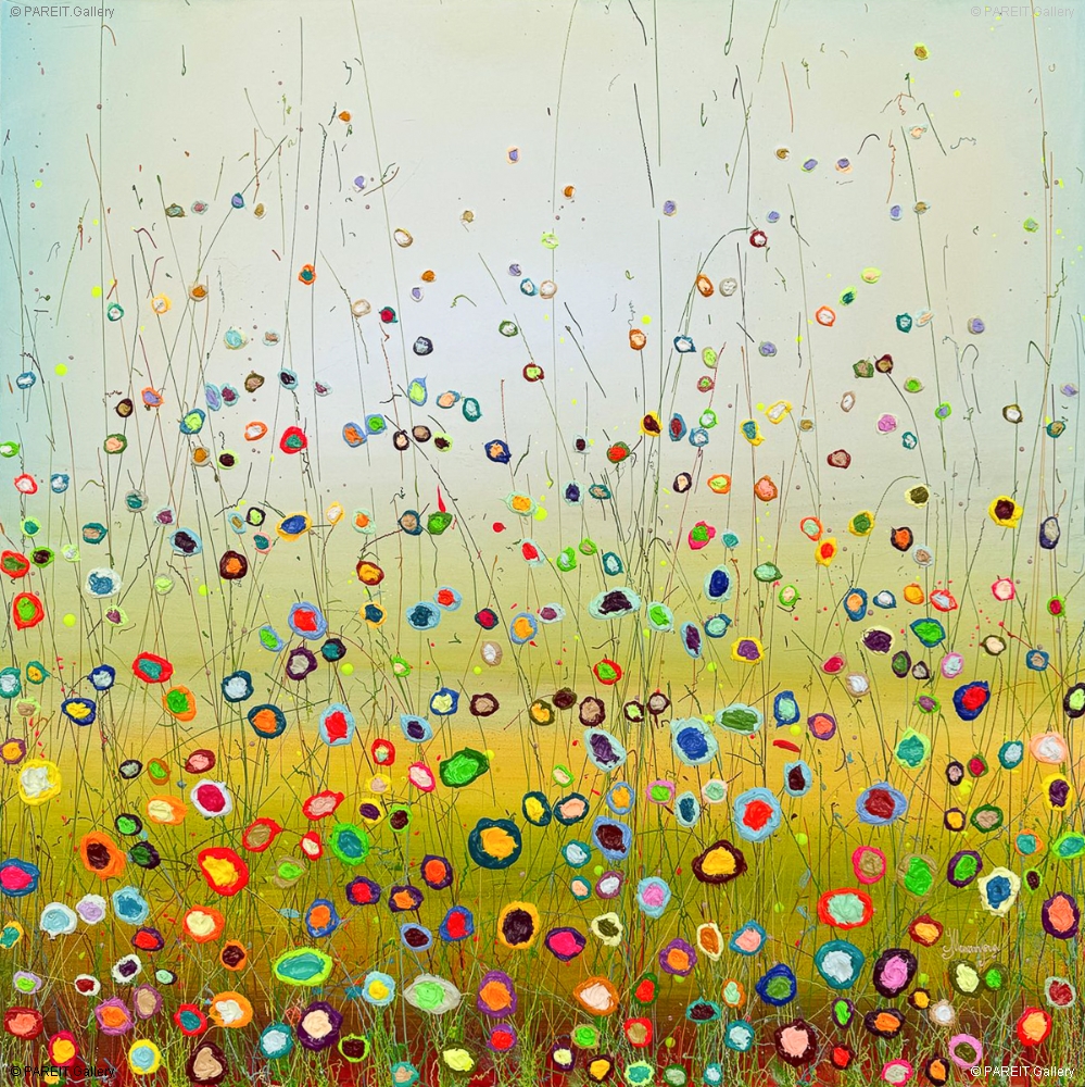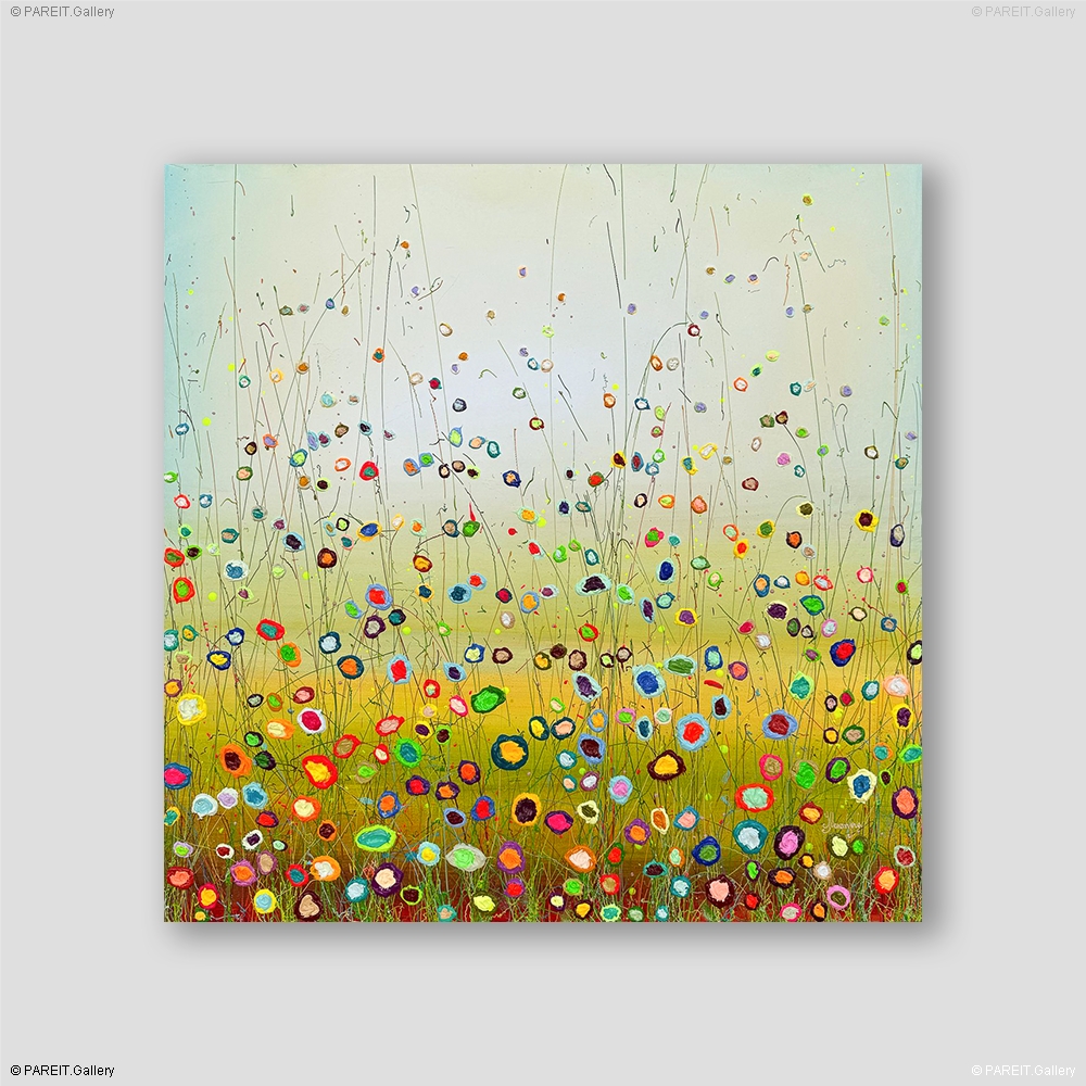 The original painting is thickly set up with acrylic paint and has a beautiful color combination. The playfulness, cheerfulness and vibrant colors that Yulia works with are truly beautiful and worthwhile to come and see for real. The works are stretched on the thick stretcher, which gives the painting even more body.