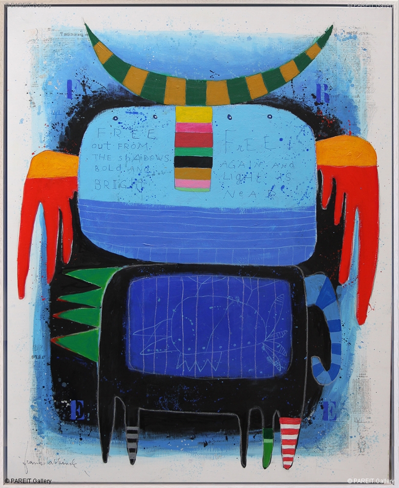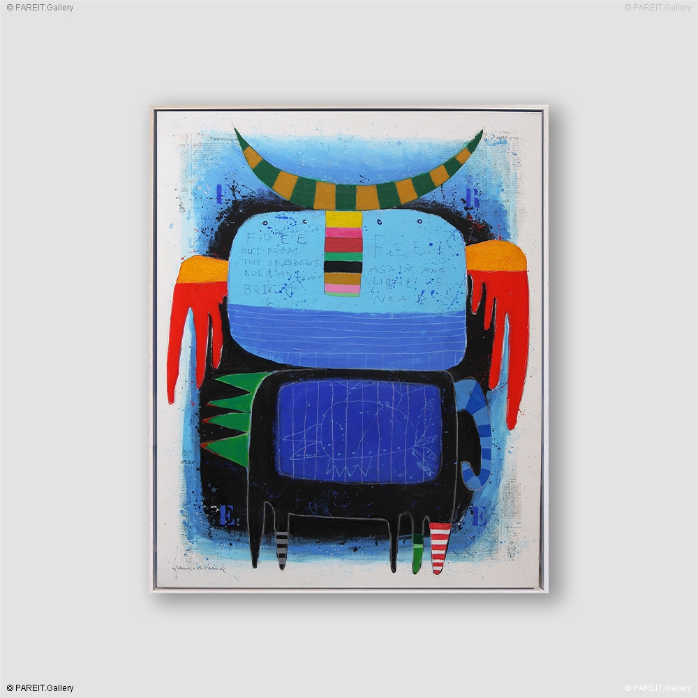 Original canvas by Frank Slabbinck, from the "Colors of Life" series (2025), set in a white floating frame.