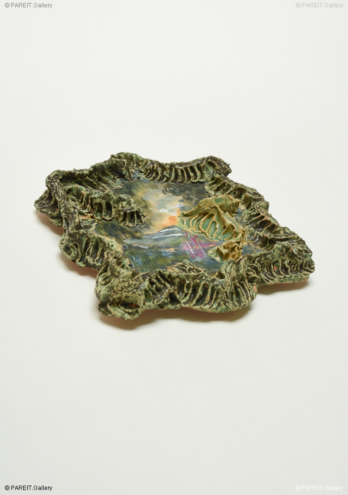 Extra info: This ceramic work, inspired by the artist's personal memories - often vague moments from long ago or dreams - combines delicate brushstrokes with a poetic sensibility. Its exceptional, eccentric framing echoes the ornamental richness of Rococo, a style that fully embraced beauty, playfulness, and detail. Flowing shapes, soft colors, and intricate patterns create an emotional and expressive experience, like visual poetry. Some elements are more tangible than others, adding an extra, tactile layer to the experience. Small "resting spots" invite the viewer to place something, literally or figuratively, within the work, transforming it into an object that transports one back into the realm of memory.
