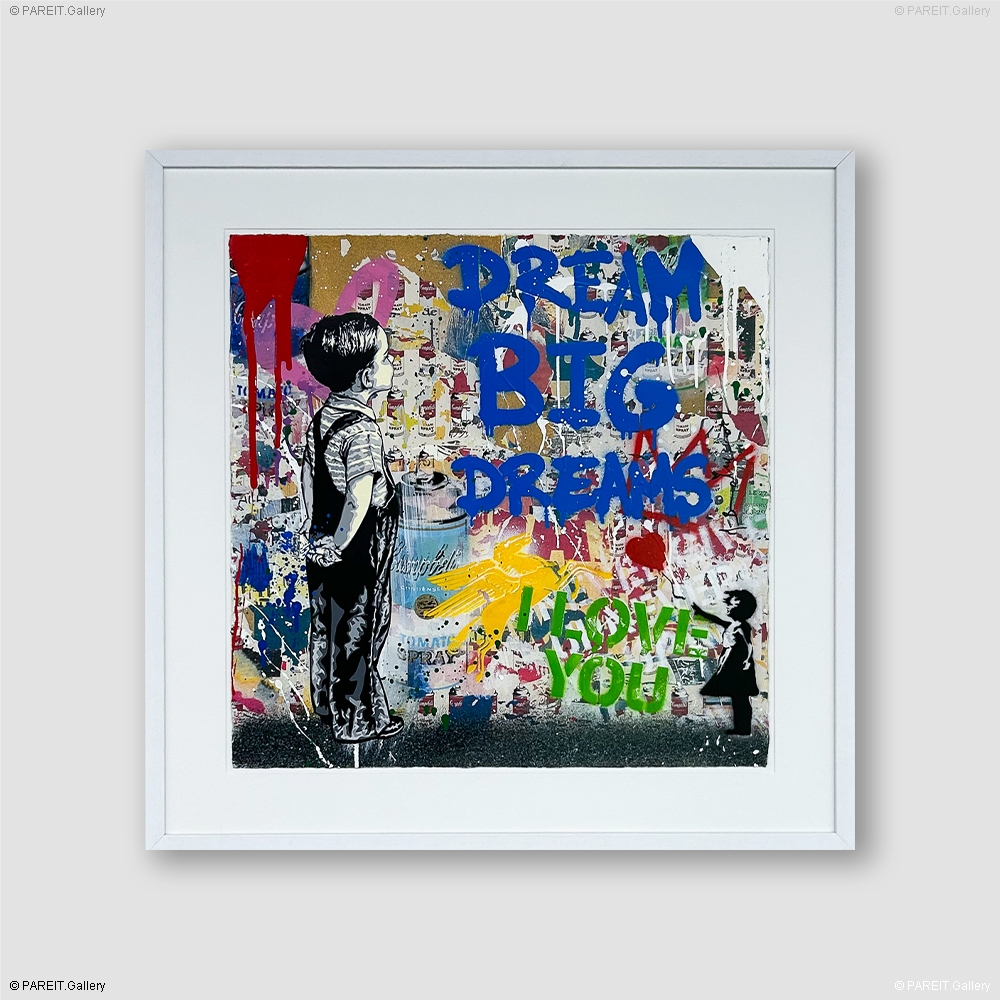Silkscreen and mixed media on paper. This artwork is professionally framed in a white frame with UV-protective glass - ready to hang and enjoy.