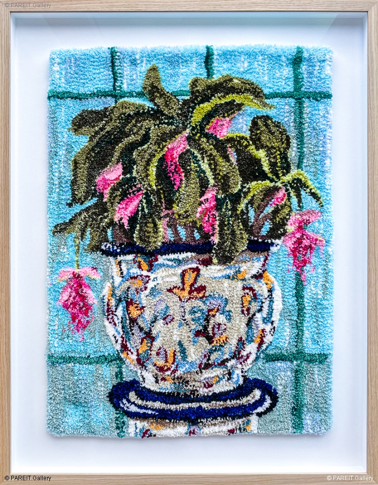 Original, multicoloured and handcrafted tapestry. This striking piece of precision craftsmanship is elegantly framed in wood with UV-protective glass. The work is part of the series "Serres Royales Laeken", specially created by the artist for the exhibition "Bloom" (2025).