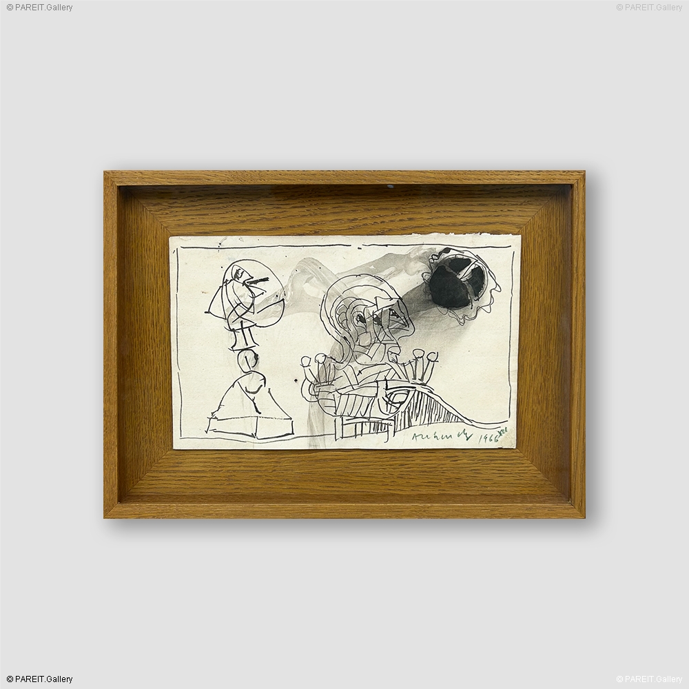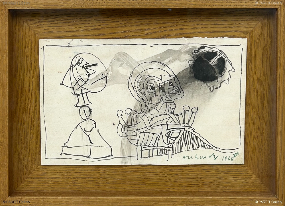 Extra info: Original signed work from the 1960s, a period during which Alechinsky gained international recognition and further developed his ink and wash technique during his time in Paris and the Oise. The medium is characteristic of his oeuvre: the ink produces sharp, expressive lines, while the wash adds tones, atmosphere, and often more "floating" forms. As described: