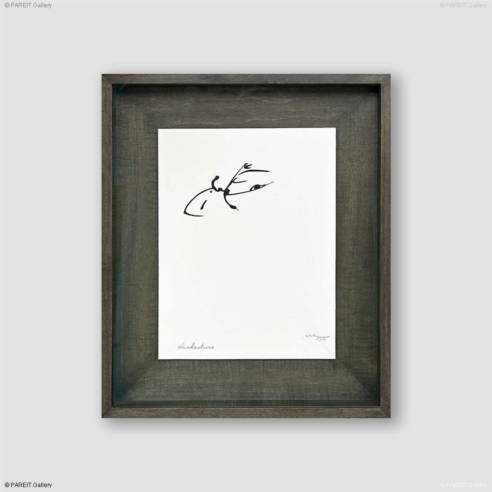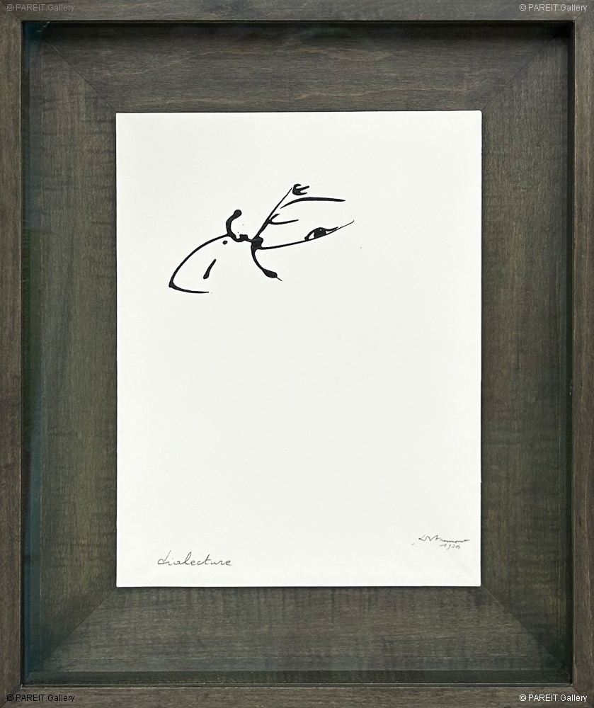 Original and signed work by Christian Dotremont, executed in ink on paper, mounted on a dark oak backing and frame, and protected by UV-filtering glass.