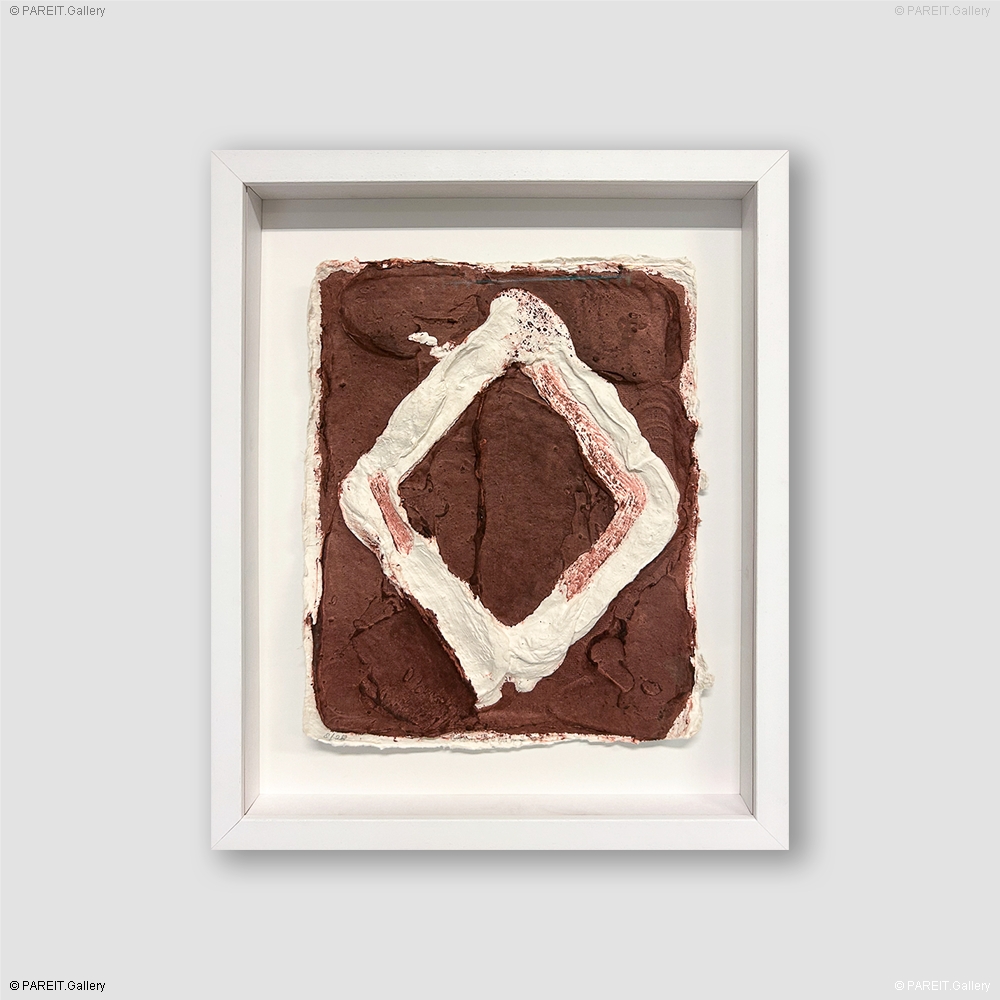 Extra info: Work (8/28) on paper by Bram Bogart. A remarkable piece for collectors. The work is executed in brown-burgundy and white, a color combination unique in Bogart's oeuvre and rarely seen. It is professionally framed in a white frame and fitted with non-reflective museum glass.