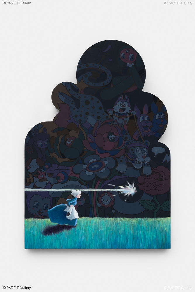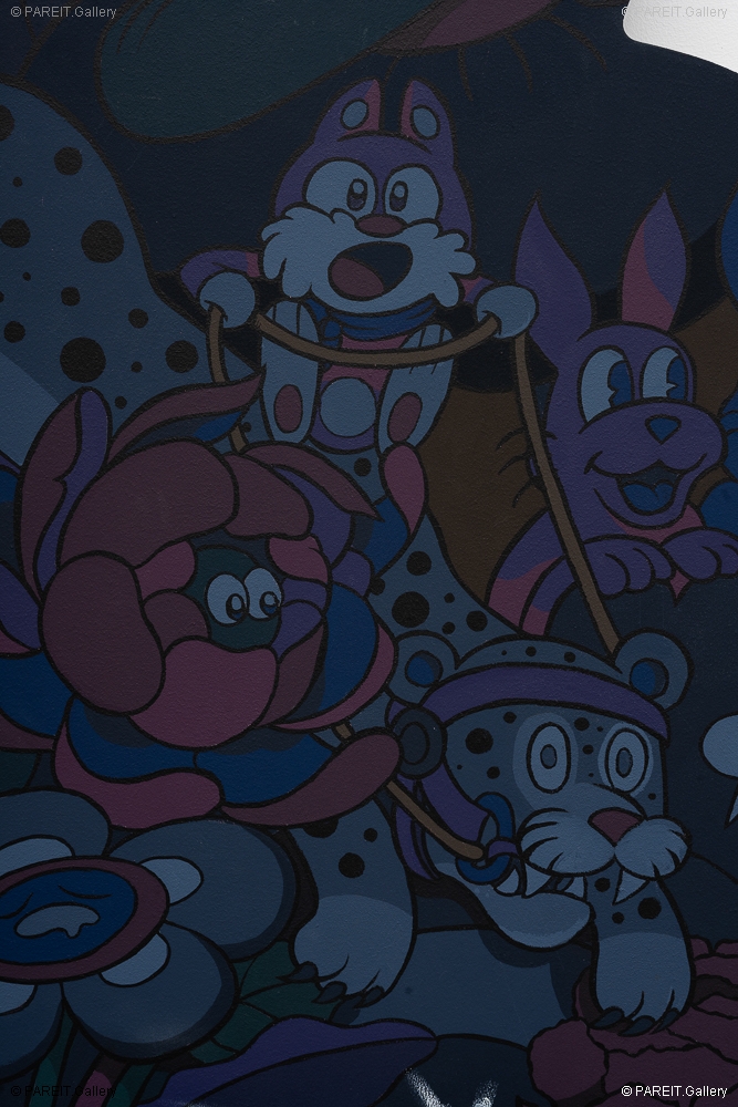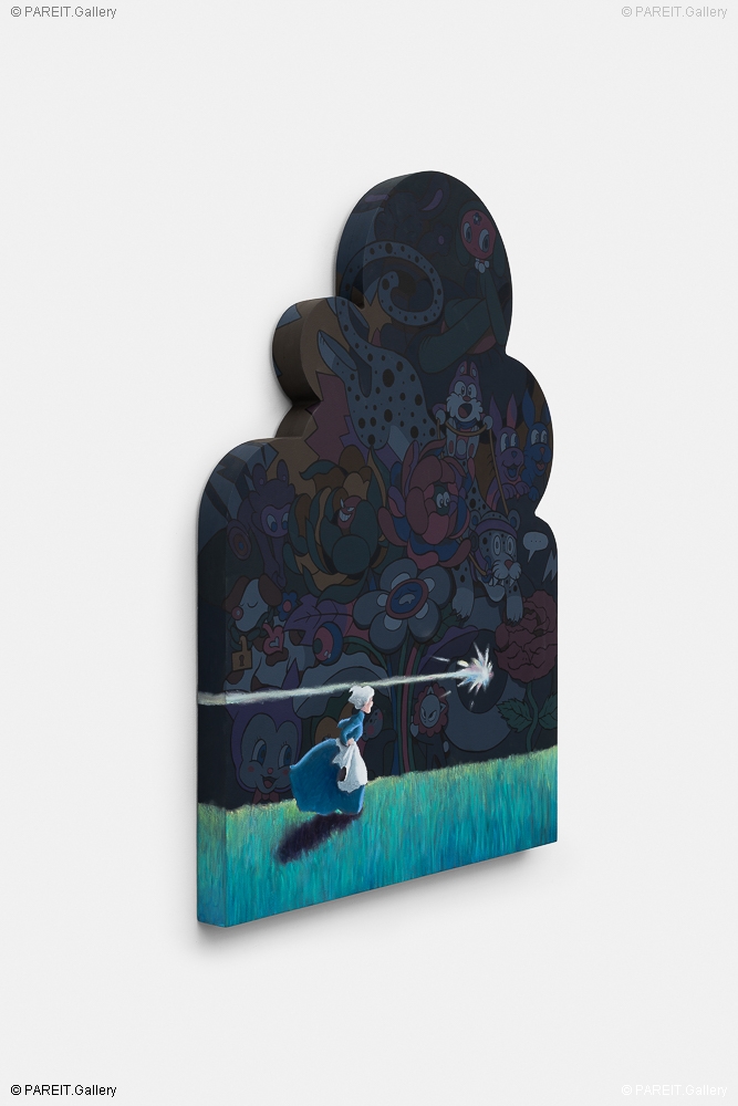 Extra info: Acrylic and oil pastel on a custom-made, cloud-shaped wooden panel. The distinctive cloud shape makes this work truly one-of-a-kind. An expressive masterpiece, almost explosive in color with lively "Doodle" figures, signed on the back by one of the most influential young artists of his generation.