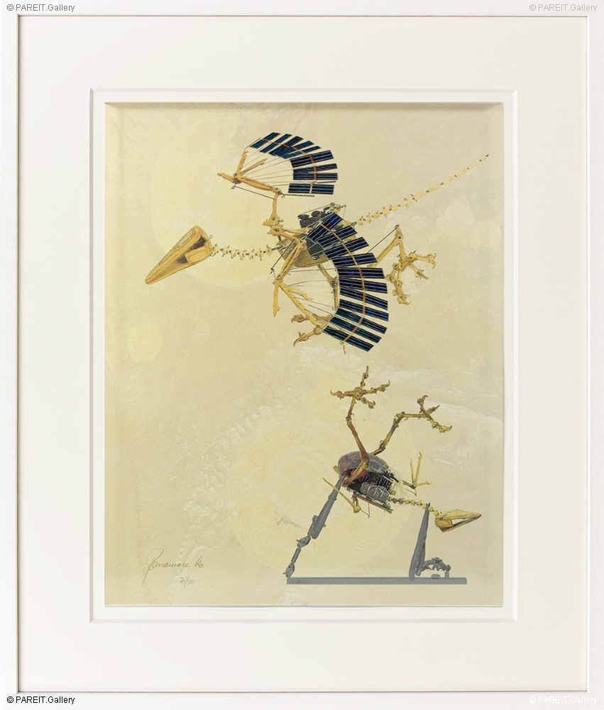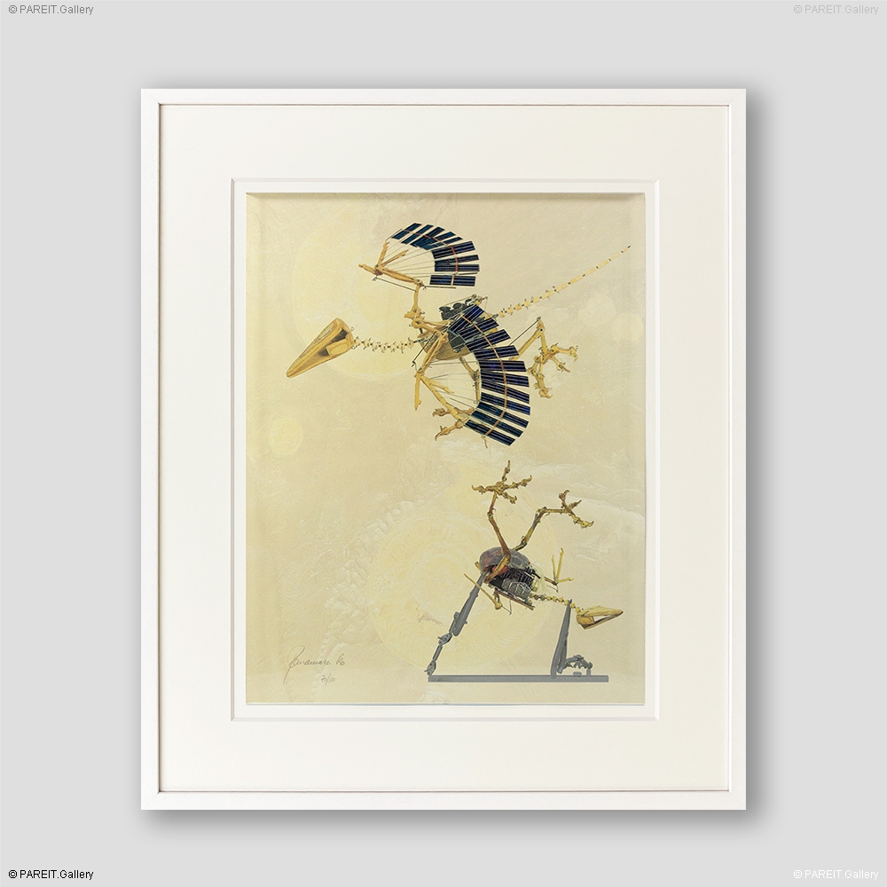 Info complémentaires: Impression couleur avec impression taille-douce. Signé et numéroté sur 100 exemplaires + XX + AP unique. Cette oeuvre est un collage. Certaines pièces ont été collées en collage. Cette oeuvre est encadrée dans un cadre blanc avec verre antireflet.