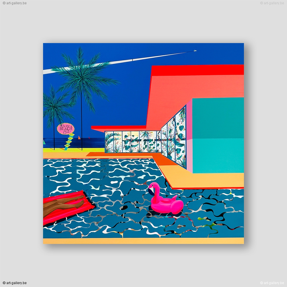 Peinture acrylique originale sur miroir Plexi. L'oeuvre est encadrée par un cadre en métal léger. Sans savoir où l'on se trouve, ni sans savoir ce qui va se passer ensuite, on se retrouve dans des lieux mystérieusement colorés. Des espaces calmes et sereins qui semblent perdus dans le temps et dépourvus de vie. Et pourtant... Puis un mouvement se produit et les surfaces des miroirs commencent à animer les tableaux grâce aux reflets de la lumière.