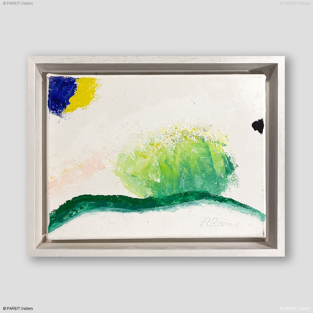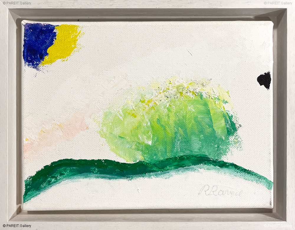Dans cette phase tardive de son oeuvre, Raveel privilégie une composition épurée : formes simples, blancs dominants, géométrie minimale. Le jardin devient ici un espace mental - un lieu délimité où voir, penser et être se confondent. Depuis son environnement quotidien à Machelen-aan-de-Leie, Raveel ne peint pas la nature telle quelle, mais une image intérieure, où les frontières entre monde extérieur et monde intérieur s'effacent.