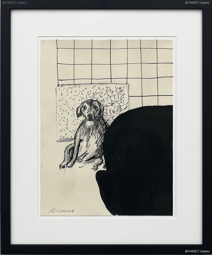 ou peut-être s'en éloigner. L'animal, chez Raveel, symbolise souvent la proximité et la fidélité. Les contours fluides et le fond structuré en