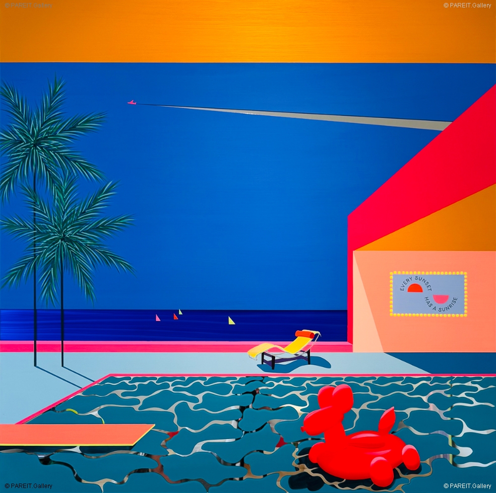 Info complémentaires: Cette oeuvre fait partie de la série Sunshine Pop (2025) et est une peinture acrylique originale réalisée sur miroir plexi, encadrée d'un fin cadre métallique. Sans savoir où nous sommes ni ce qui nous attend, nous sommes transportés vers des lieux mystérieux et colorés. Pour l'artiste, ces scènes évoquent des souvenirs vivants de divers voyages et racontent son histoire personnelle de Miami. Pour le spectateur, ce sont des oeuvres vibrantes et empreintes de positivités, où les surfaces réfléchissantes et les jeux de lumière participent pleinement au dialogue visuel.
