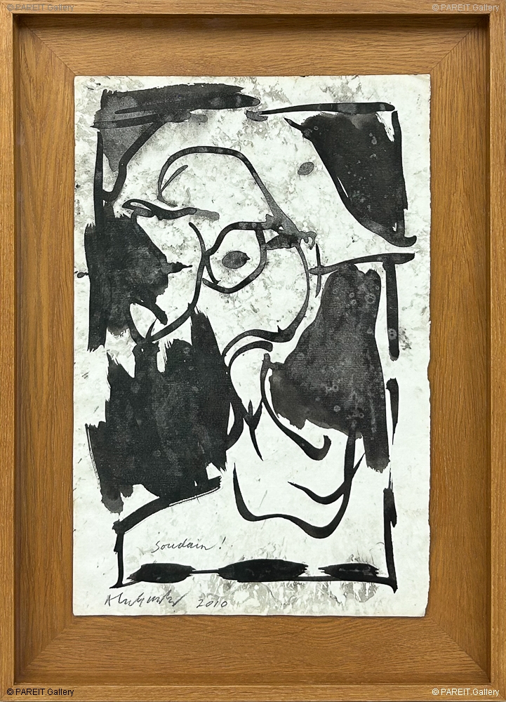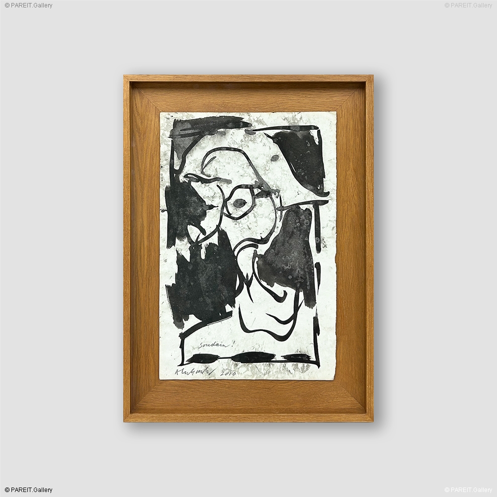 Oeuvre originale et signée de 2010, réalisée à l'encre et au lavis sur papier. Alechinsky y révèle sa maîtrise exceptionnelle des lignes spontanées et fluides. La composition dégage une dynamique expressive et une impression de mouvement soudain.Cet effet correspond parfaitement au sens littéral du titre et au point d'exclamation mentionné. L'oeuvre est encadrée de manière professionnelle avec un fond et un cadre en chêne foncé.