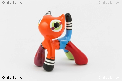 Het sculptuurtje is met de hand beschilderd en zorgt steevast voor een verfrissing van uw interieur. ?Met mijn kunst wil ik bereiken dat mensen even stil blijven staan en genieten van het moment: de vormen en kleuren op zich in laten werken. De toeschouwer moet er blij van worden.?