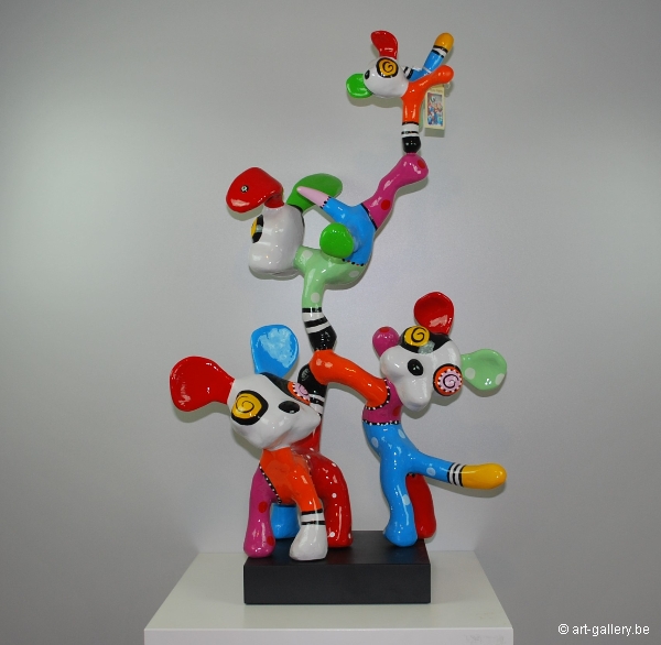 De sculptuur werd volledig met de hand vervaardigd door Jacky. Gesigneerd.