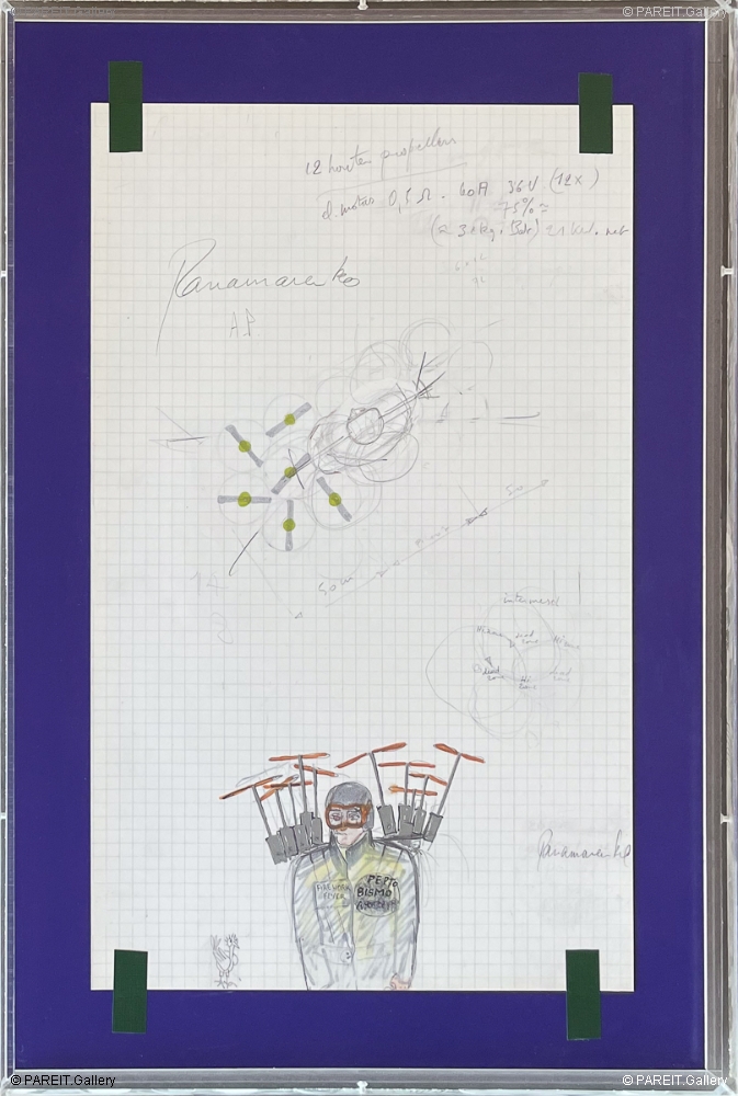 Lithografie van Panamarenko gesigneerd en genummerd op 250 ex + enkele AP's. Het werk is ingelijst in een plexibox.