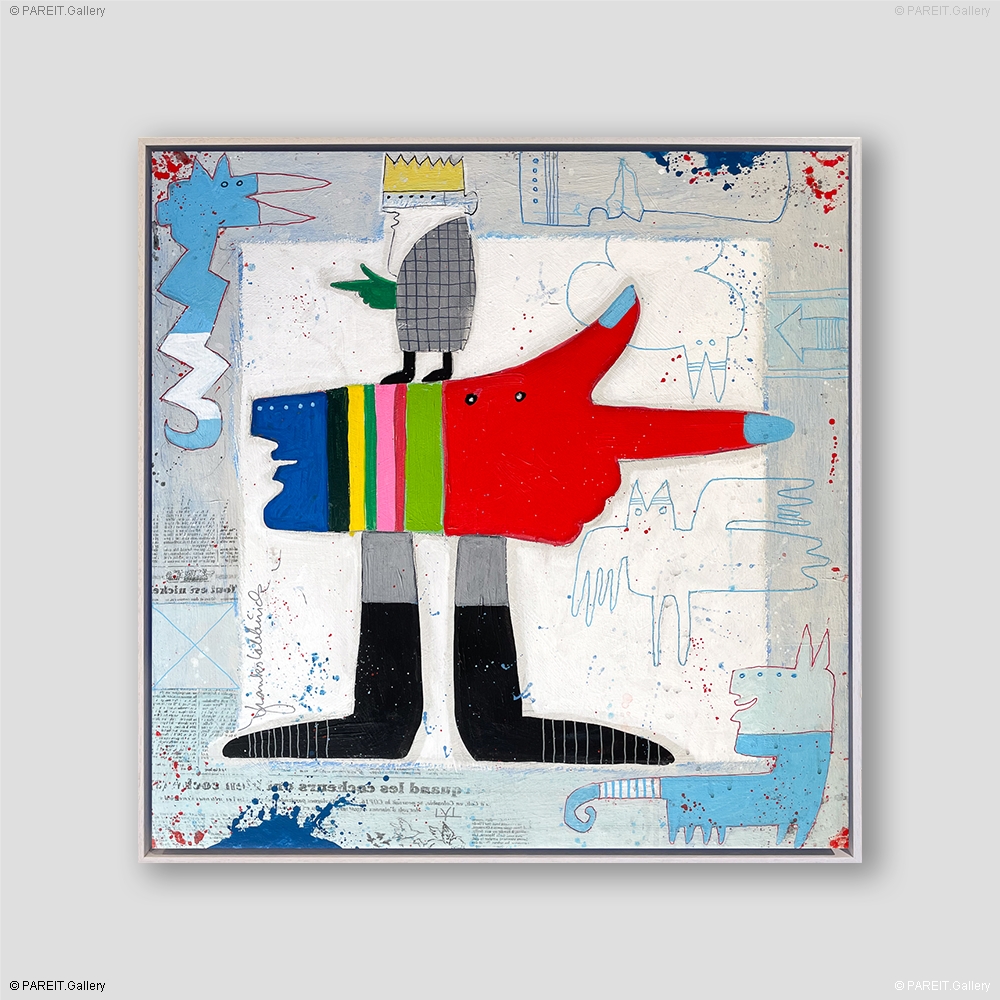 Origineel schilderij op canvas van Frank Slabbinck. Het werk is ingelijst in een witte baklijst.