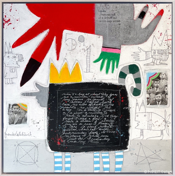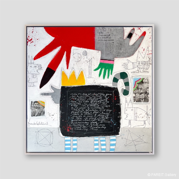Origineel schilderij op canvas van Frank Slabbinck. Het werk is ingelijst in een witte baklijst.