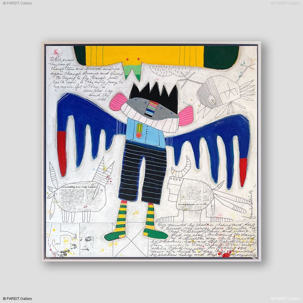 Origineel schilderij op canvas van Frank Slabbinck. Het werk is ingelijst in een witte baklijst.