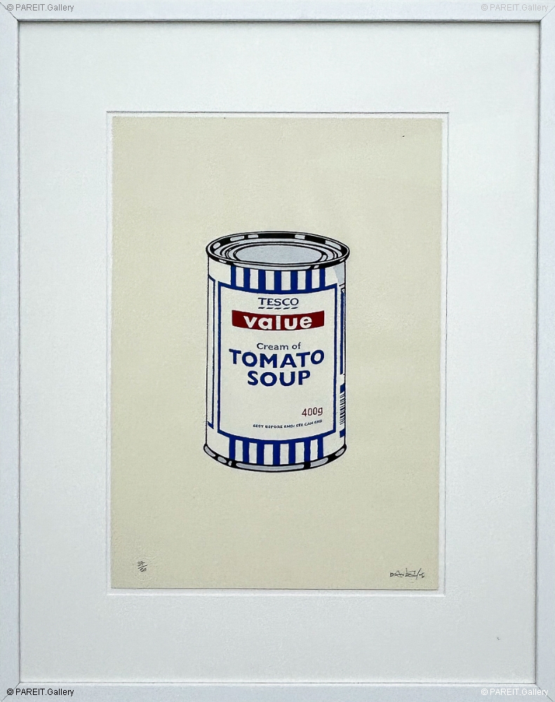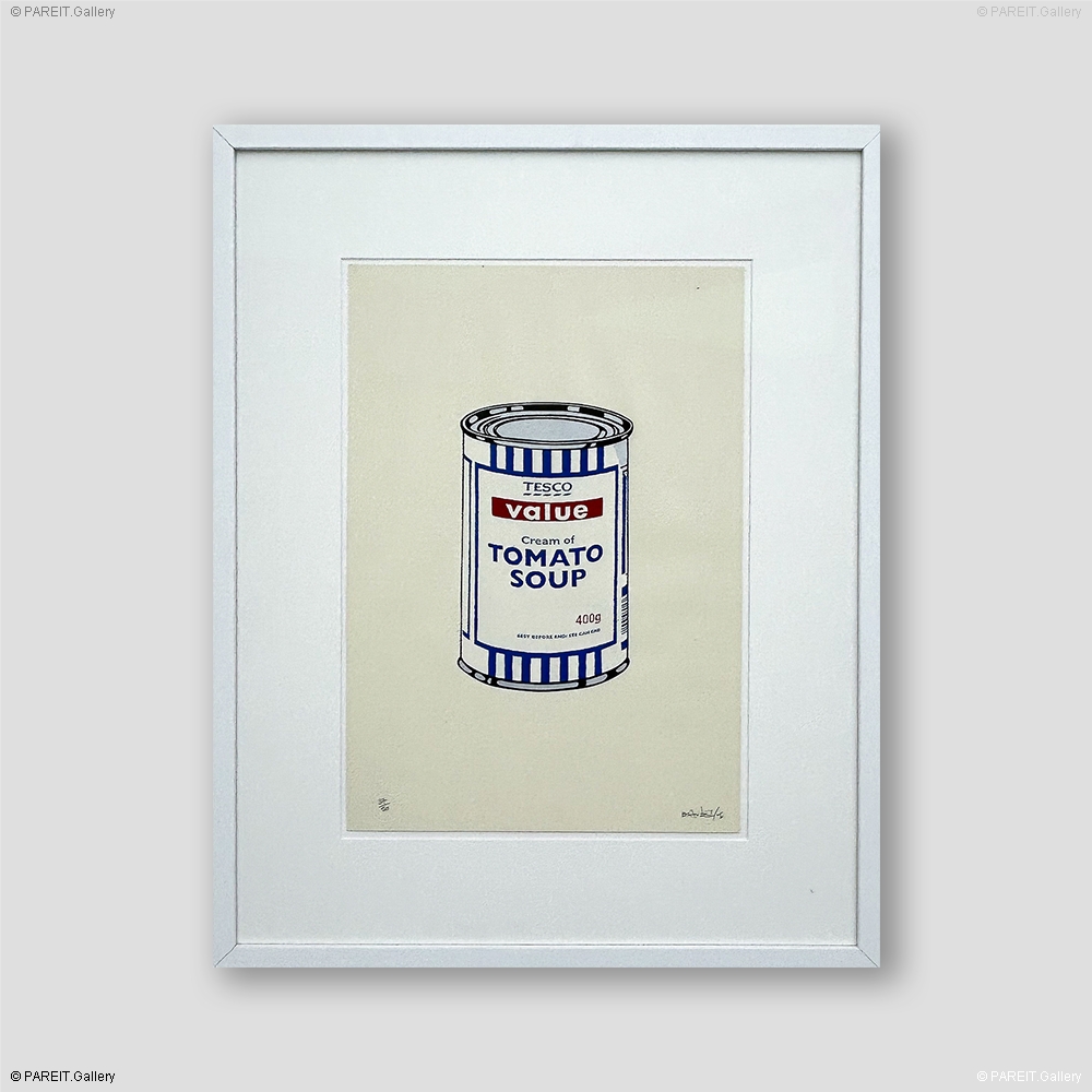 Banksy's Soup Can is een duidelijke verwijzing naar Andy Warhol's beroemde serie van Campbell's Soup Can schilderijen en prints uit 1962. Waar Warhol echter de eindeloze reproductie binnen de consumentencultuur vierde, neemt Banksy een meer kritische houding aan.