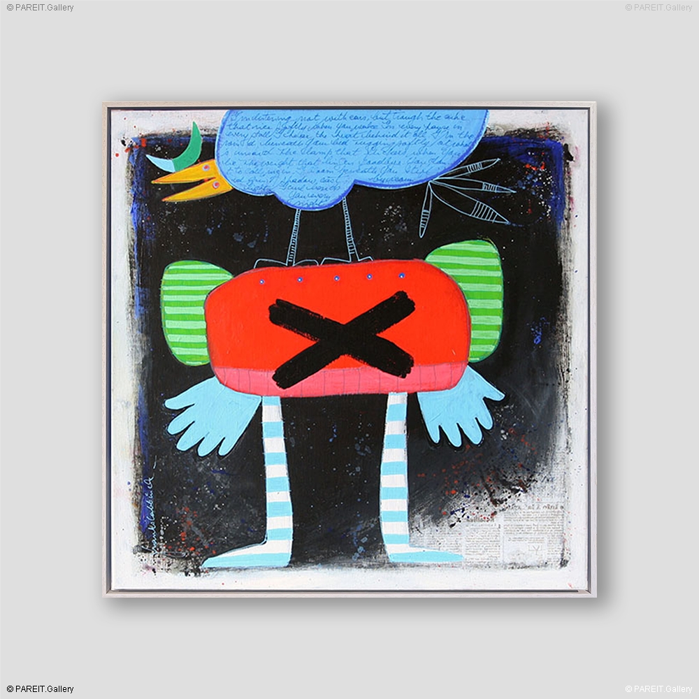 Origineel schilderij op canvas van Frank Slabbinck. Het werk is ingelijst in een witte baklijst.