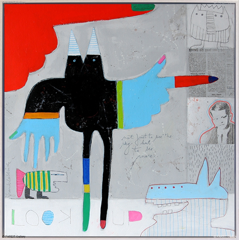 Origineel schilderij op canvas van Frank Slabbinck. Het werk is ingelijst in een witte baklijst.