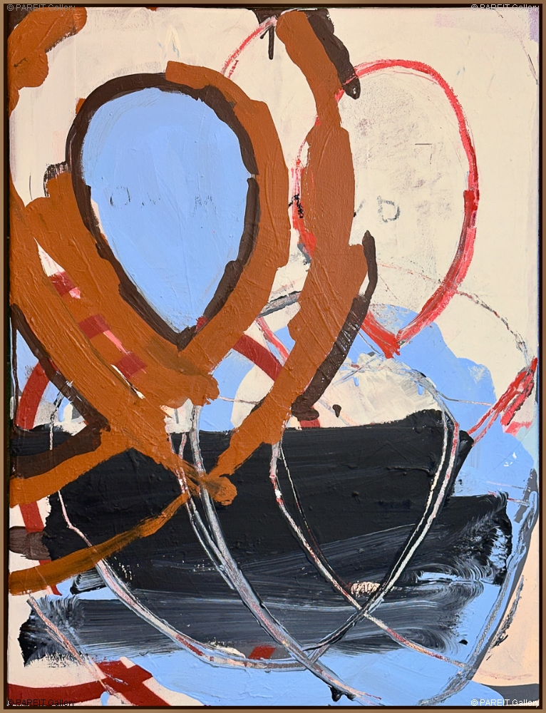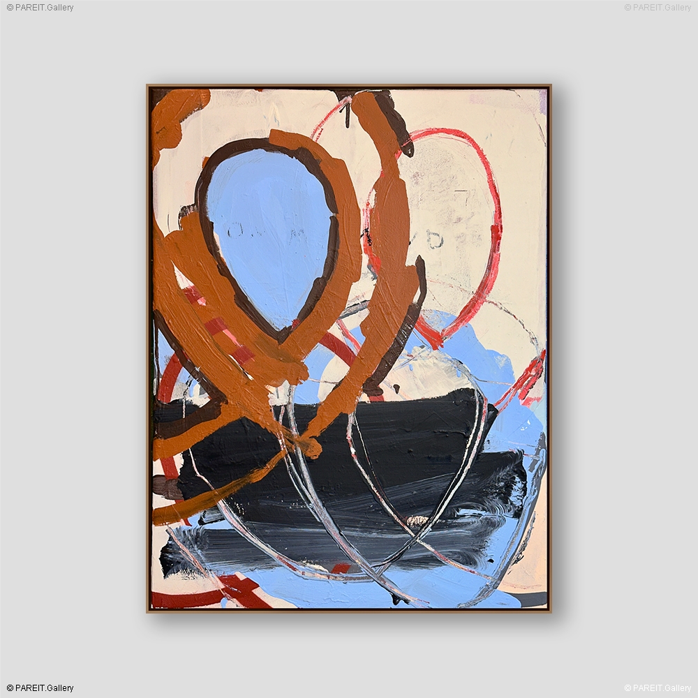 Origineel schilderij op canvas van Piroeh One. Het werk heeft een omlijsting en is klaar om op te hangen. Dit schilderij bevat de gekende Swoons, ellipsvormige cirkels die steeds terugkeren in zijn werk.