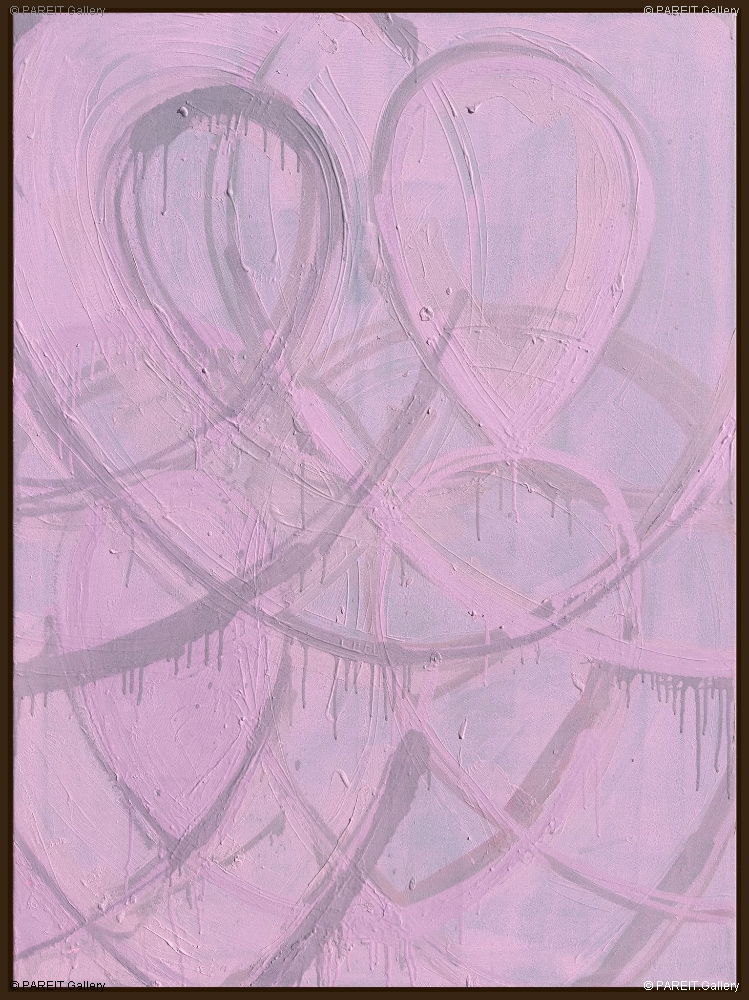 Origineel schilderij op canvas van Piroeh One. Het werk heeft een omlijsting en is klaar om op te hangen. Dit schilderij bevat de gekende Swoons, ellipsvormige cirkels die steeds terugkeren in zijn werk.