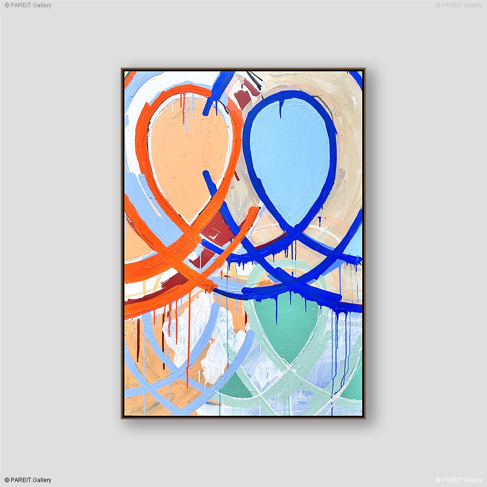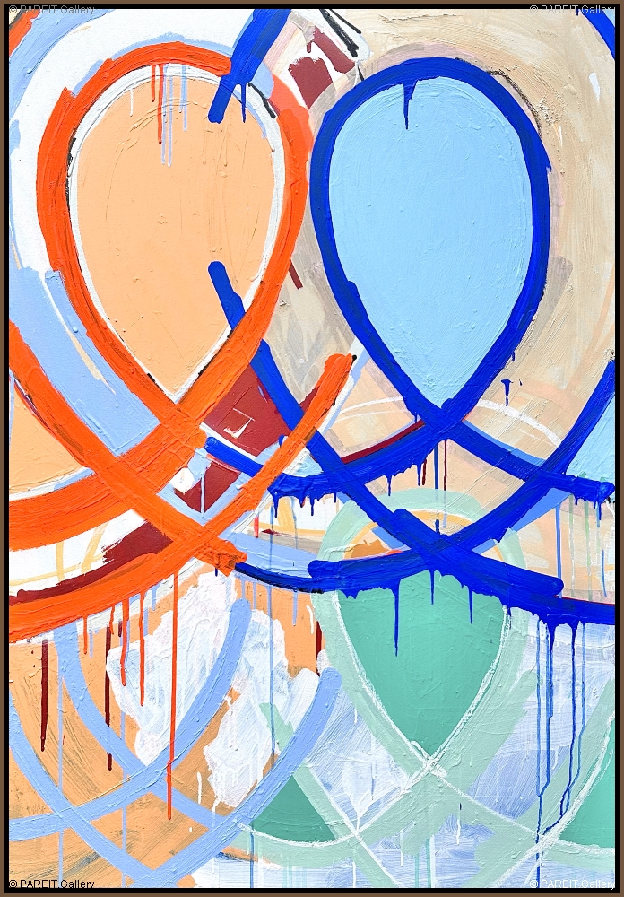 Origineel schilderij op canvas van Piroeh One. Het werk heeft een omlijsting en is klaar om op te hangen. Dit schilderij bevat de gekende Swoons, ellipsvormige cirkels die steeds terugkeren in zijn werk.