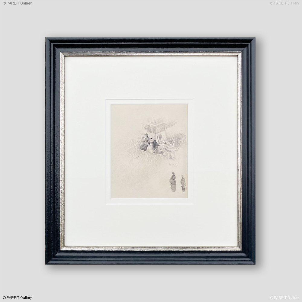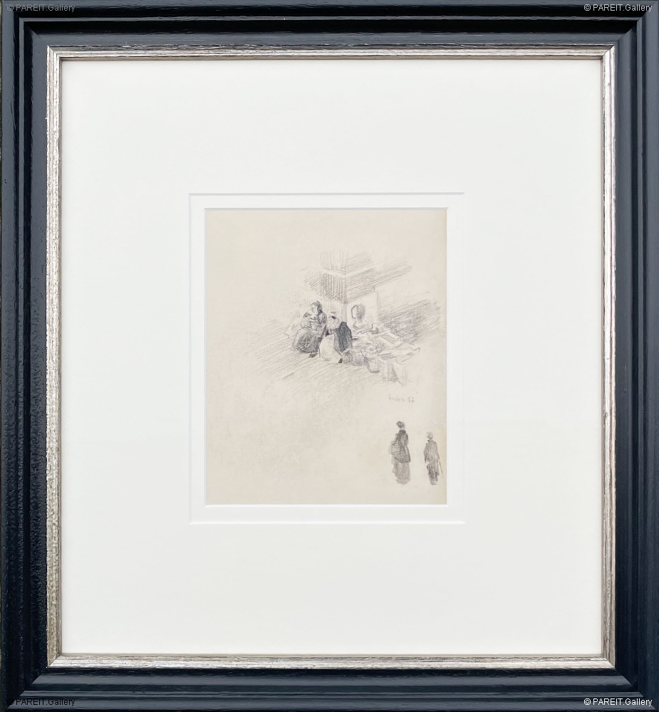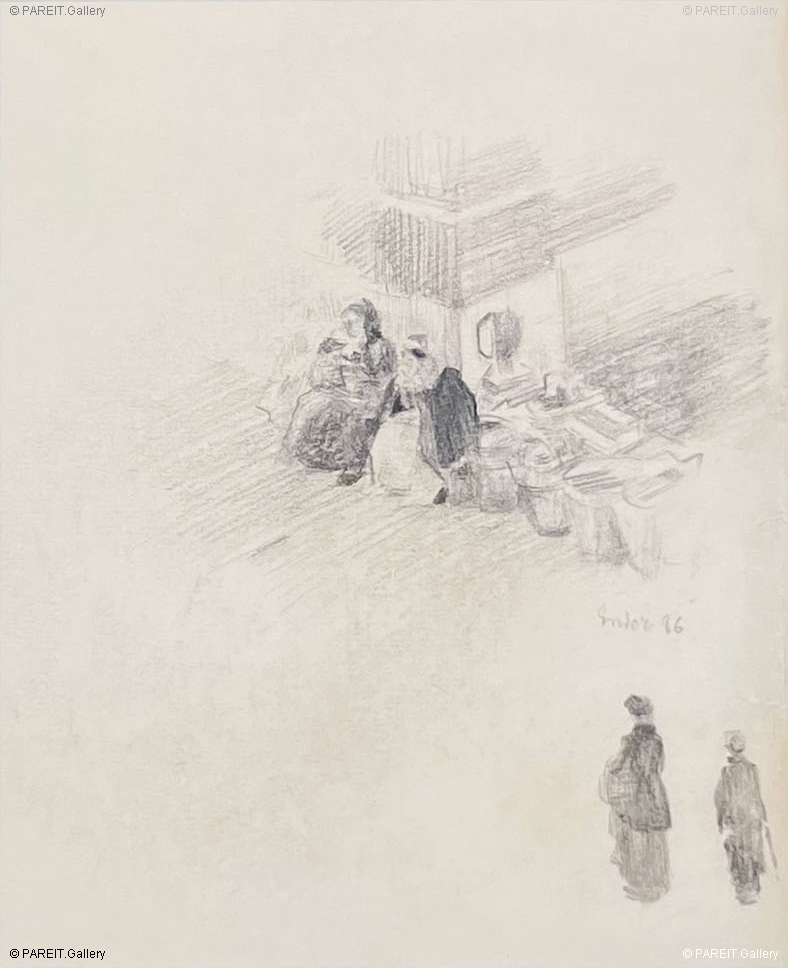 Extra info: Originele potloodtekening op papier van James Ensor. Deze tekening maakt deel uit van de schetsen uit Ensors atelier, waarin hij vaak alledaagse interieurs, stillevens en details uit zijn huis in Oostende vastlegde.