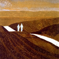 He is a romantic and individualist whose work evolved from a neo-expressionist style (early 80ies) to a nearly abstract image inspired by alchemistic motives (90ies), and from 1998 to return to the figurative and content-based themes. For example, Vandekerckhove concentrates on the picture relationship between motive and background, and human and surroundings.