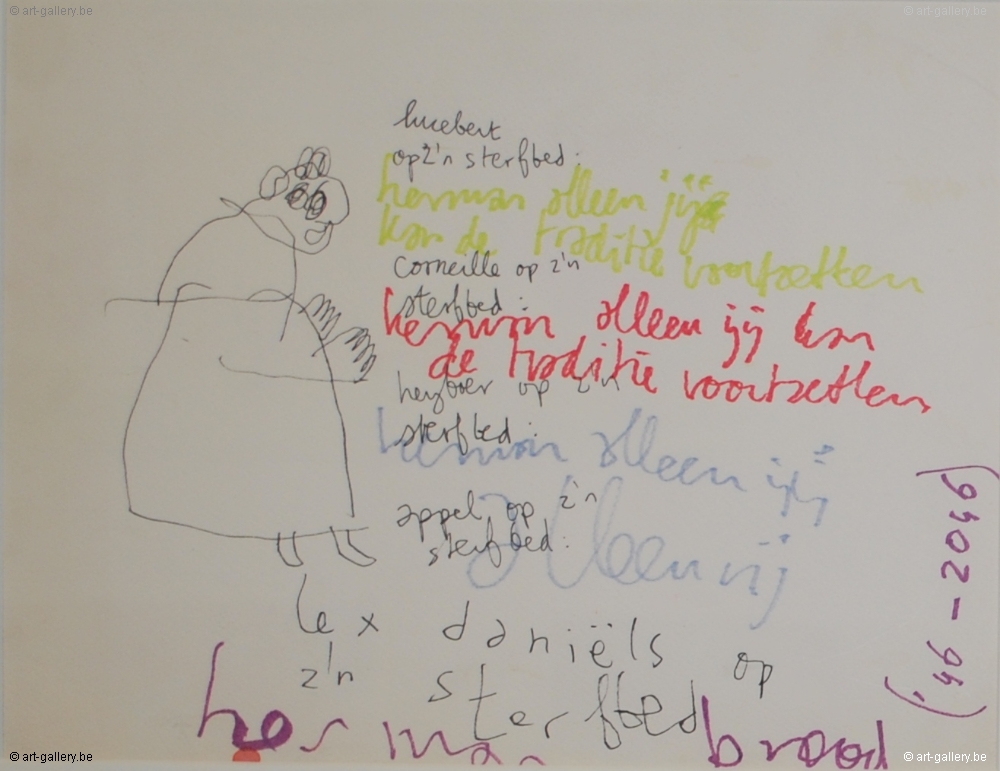 Original painting on paper of Herman Brood. With certificate of Koos Van Dijk (manager Herman Brood). This artwork is framed.