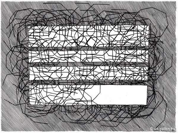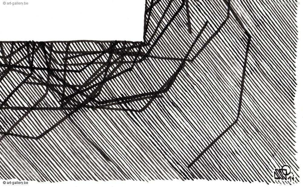 Original drawing on paper by William Conrad . The drawing is signed and framed in a wood color frame . The octagon is invariably a constant in Conrad's work. The lines are all applied with the free hand with the aid of a light brush. This work includes a certificate of authenticity.