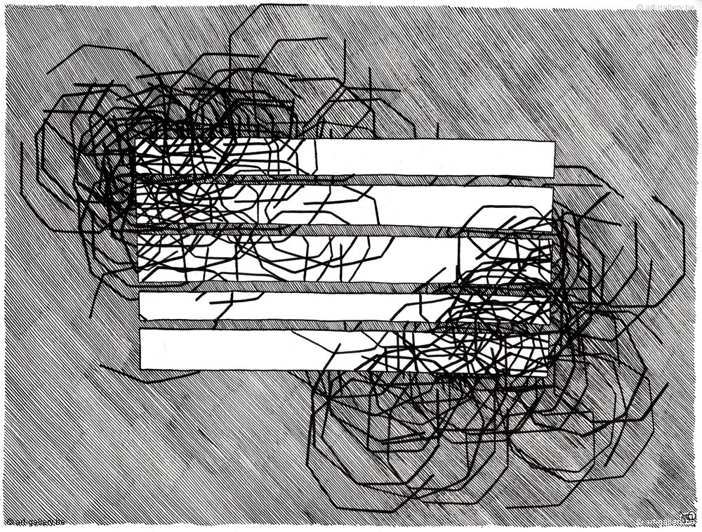 Original drawing on paper by William Conrad . The drawing is signed and framed in a wood color frame . The octagon is invariably a constant in Conrad's work. The lines are all applied with the free hand with the aid of a light brush. This work includes a certificate of authenticity.