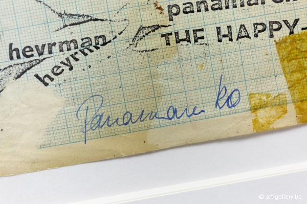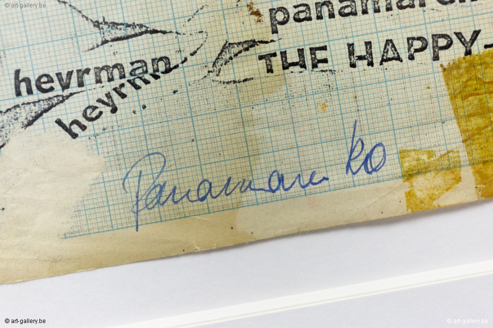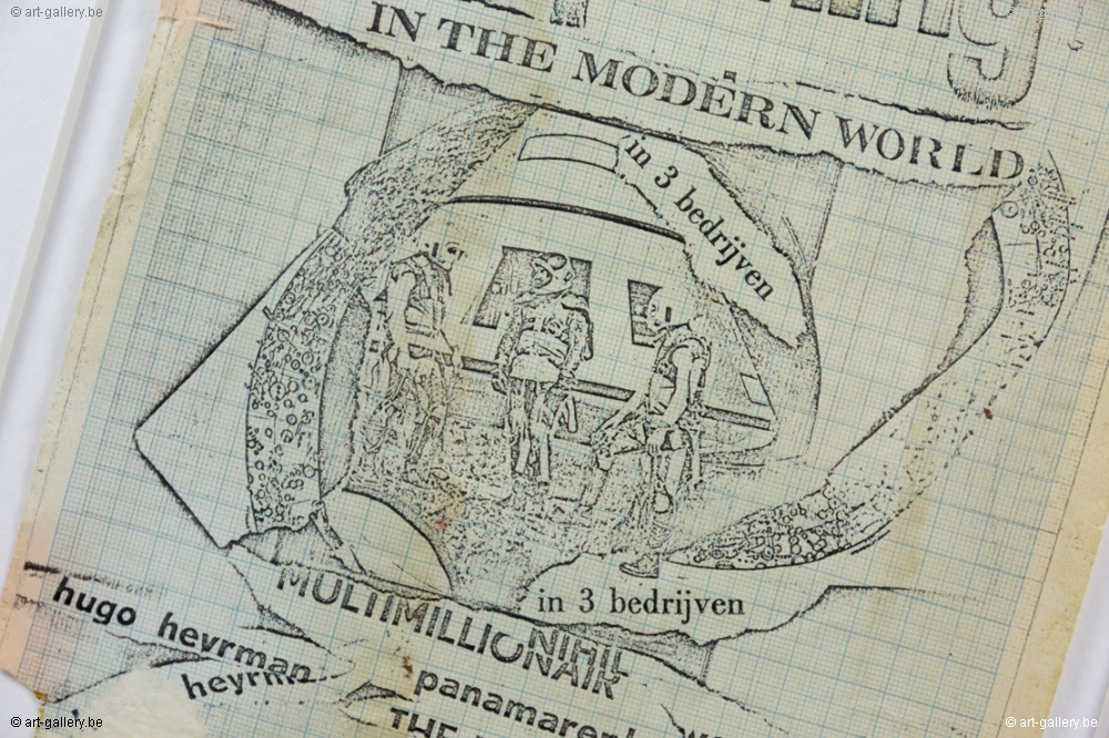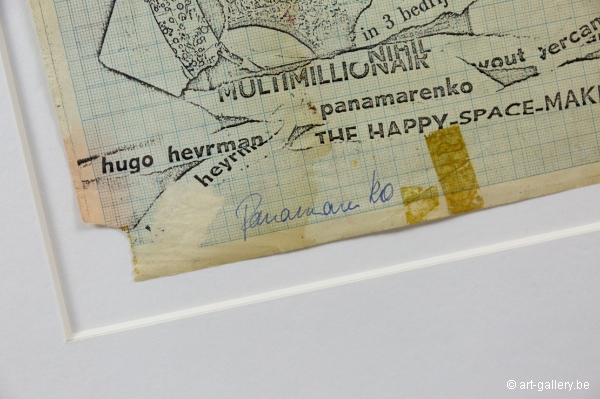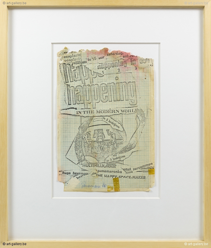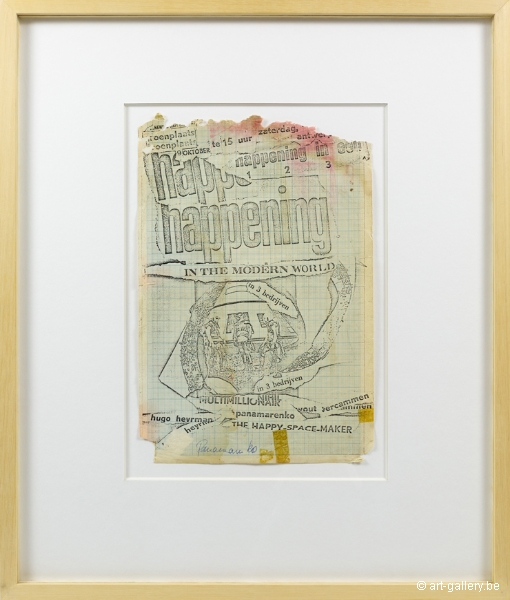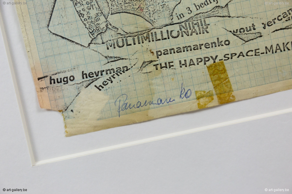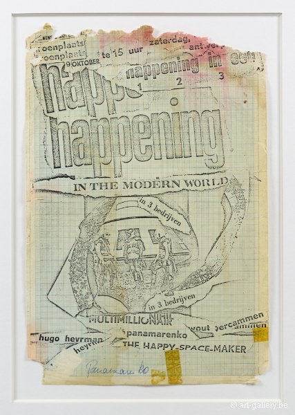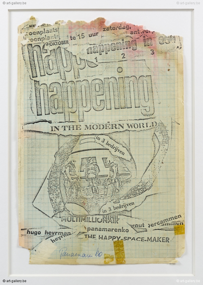 Extra info: Unique print signed by Panamarenko. This is a museum piece shown in the Marta Herford museum. This work comes from Jan Hoet. This is an announcement of a Happening at the Groenplaats in Antwerp.