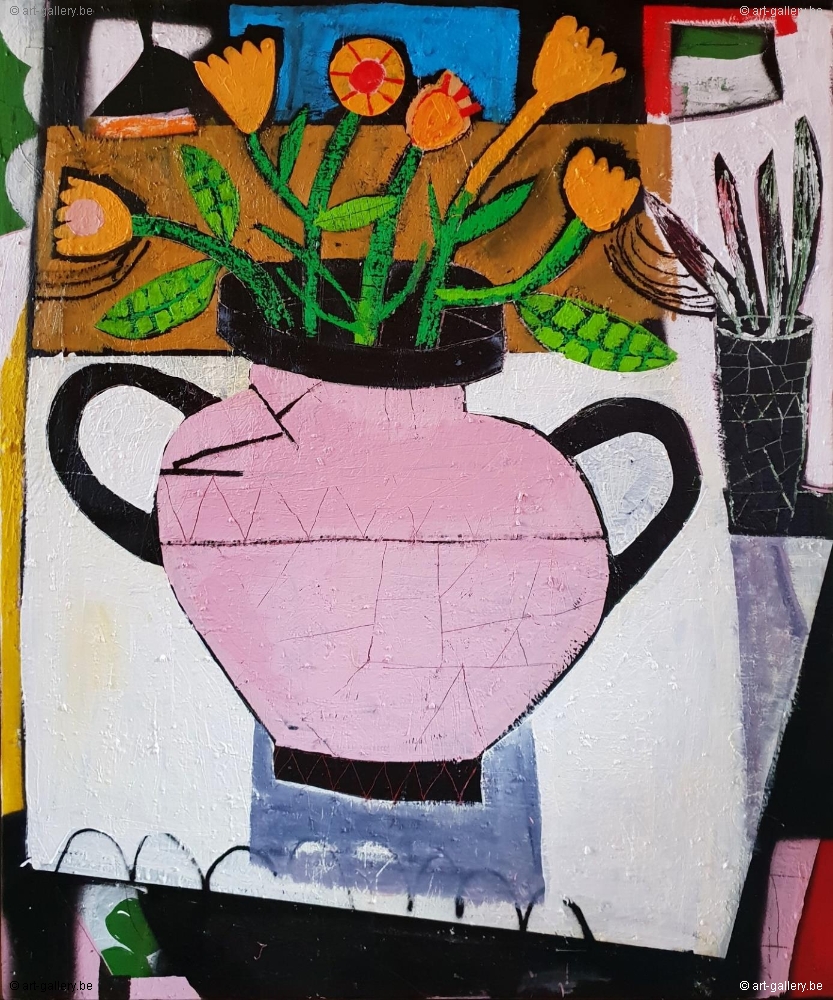 Pink Vase with Flowers