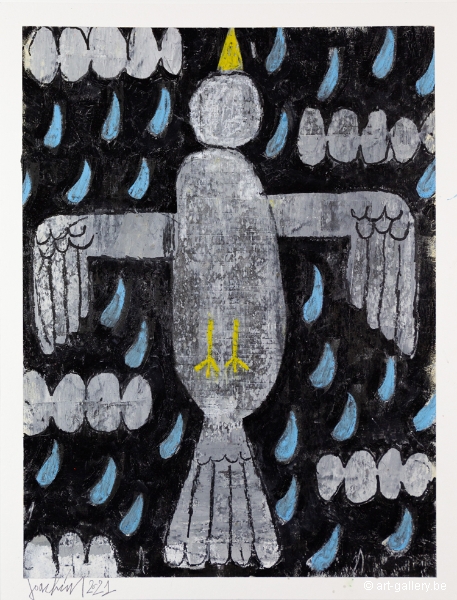 Original oil painting on paper by Joachim Lambrechts. The work was exhibited in the solo exhibition 'Min or less true representations' - May-Jun 2021 in Knokke. The work is professionally framed with UV-resistant and anti-reflective museum glass with a black frame. The dimensions including framing are 67.5 cm wide and 82.5 cm high.