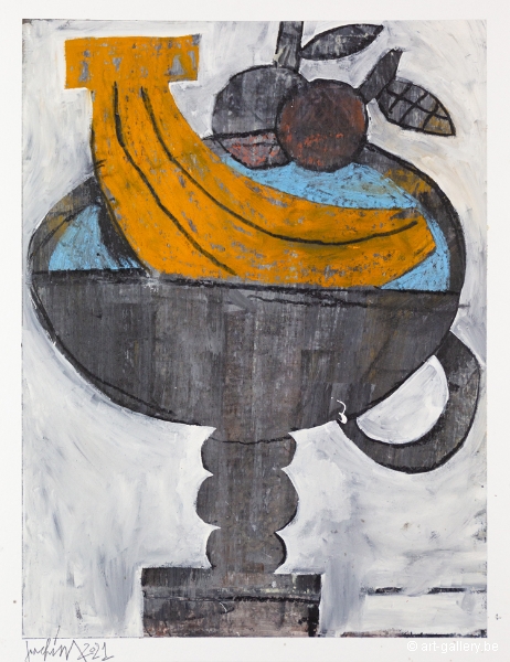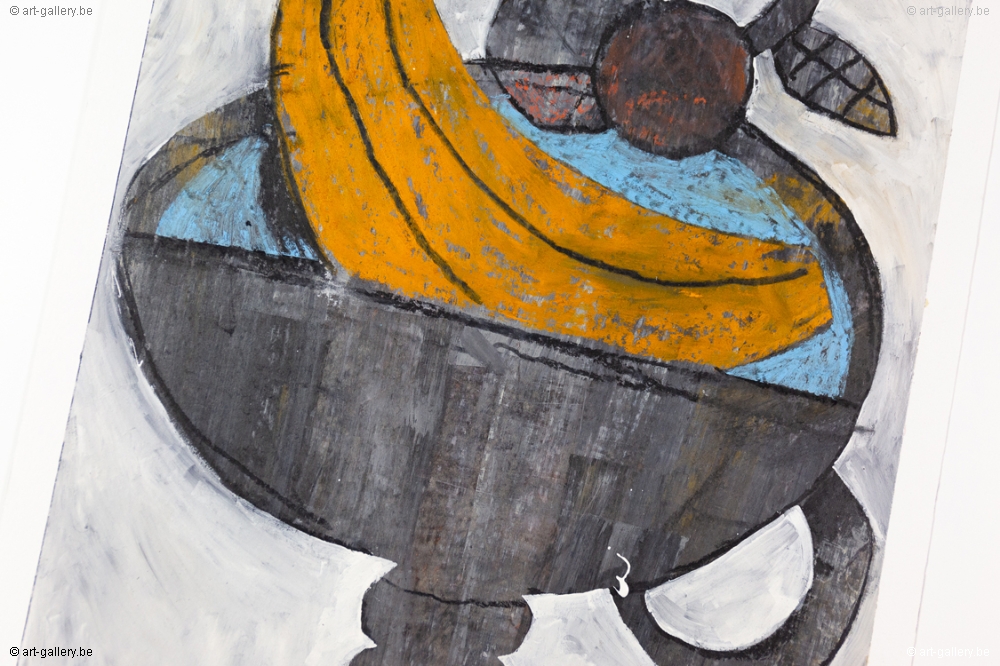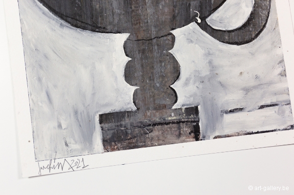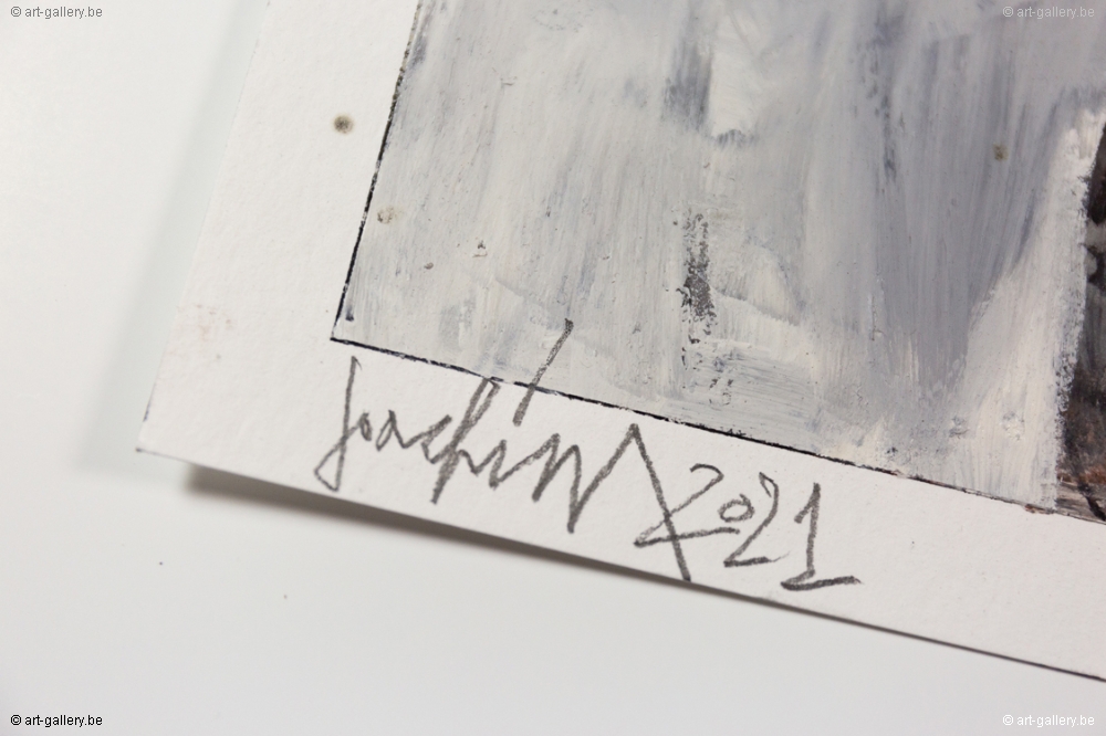 Original oil painting on paper by Joachim Lambrechts. The work was exhibited in the solo exhibition 'Min or less true representations' - May-Jun 2021 in Knokke. The work is professionally framed with UV-resistant and anti-reflective museum glass with a black frame. The dimensions including framing are 67.5 cm wide and 82.5 cm high.