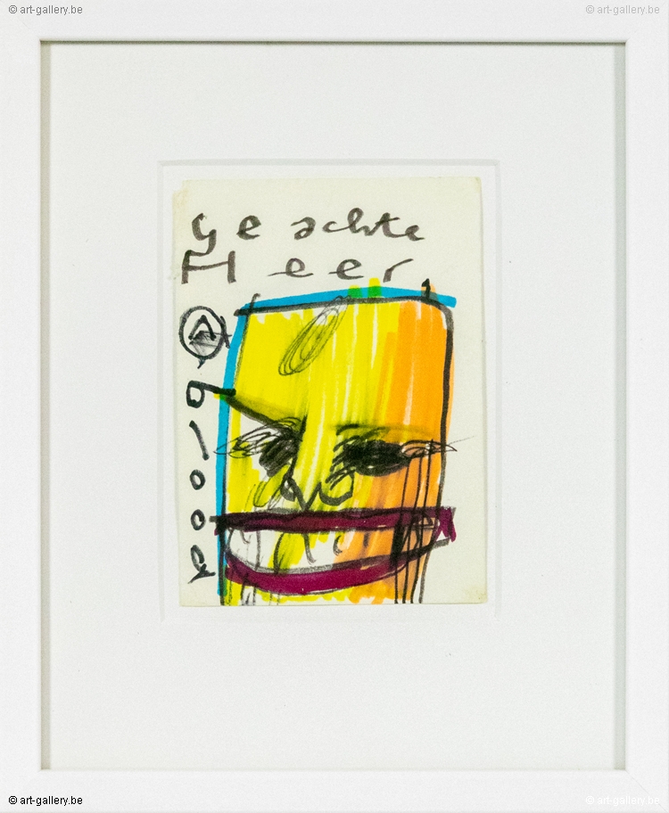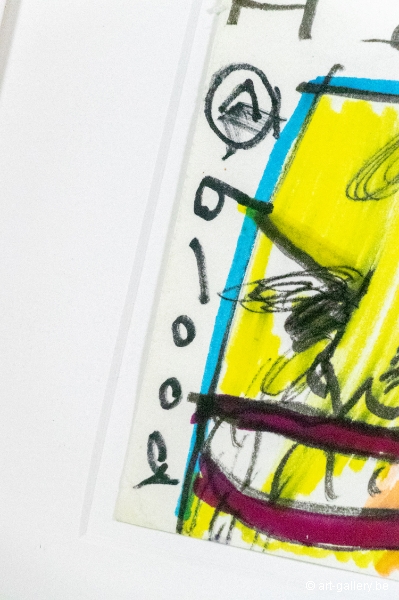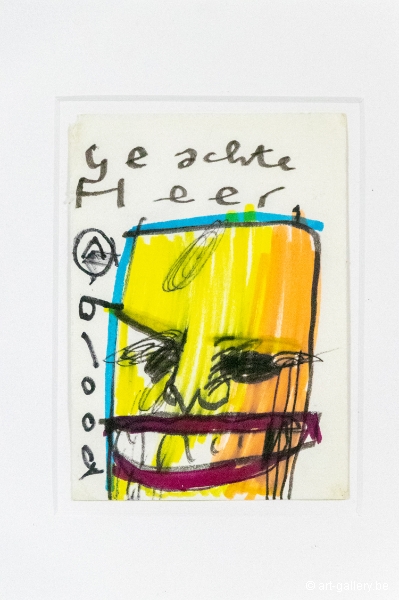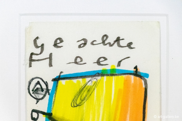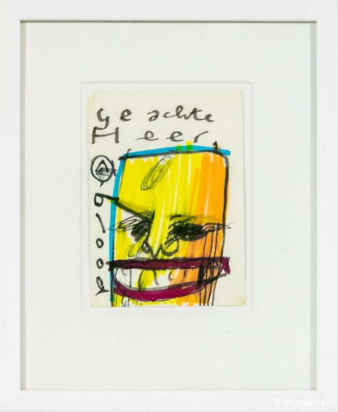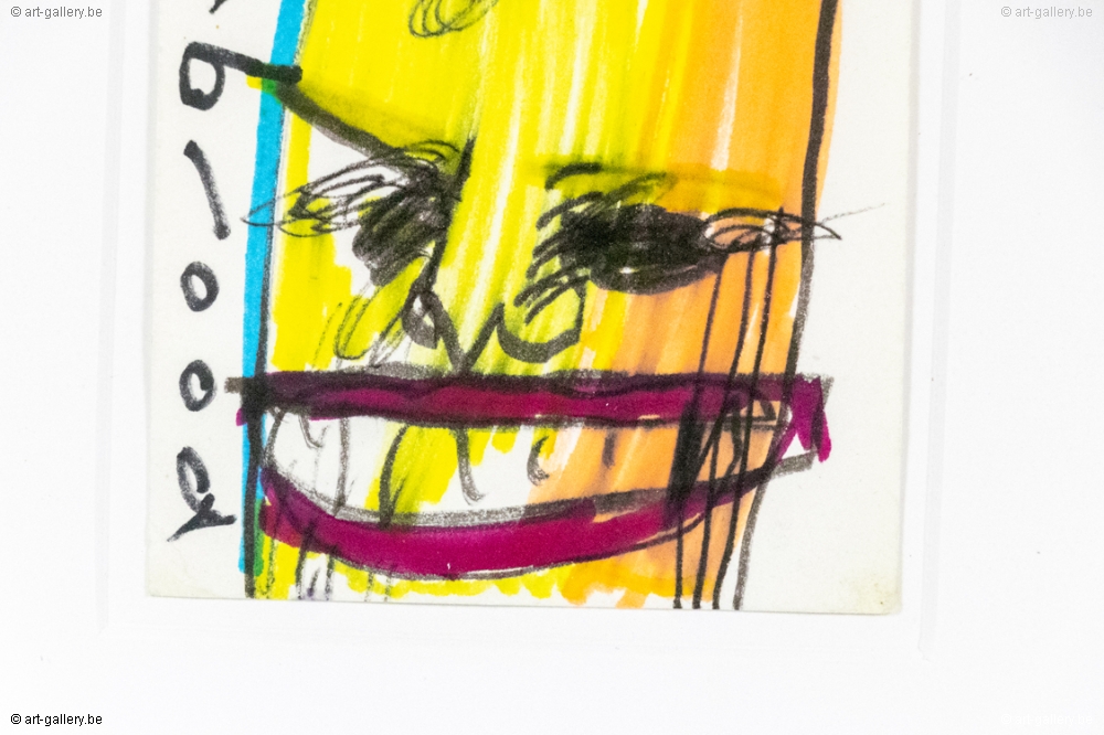 Original drawing by Herman Brood on paper. Hand-drawn, colored and signed by Herman Brood. The work is framed in a sober white frame and will be delivered with a certificate of authenticity from Broodnodnodig.nl. The certificate is also signed by Herman Brood's son, Marcel Buissink.