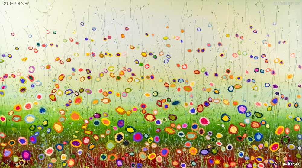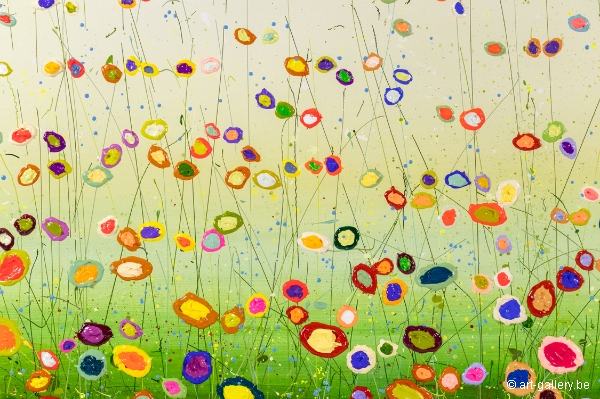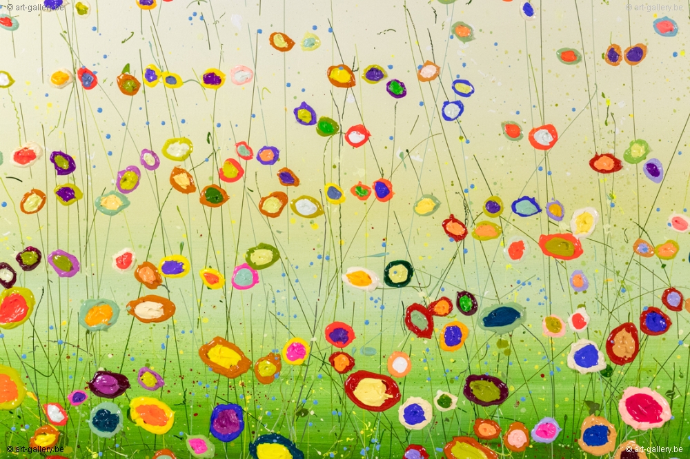 The original painting is thickly set up with acrylic paint and has a beautiful color combination. The playfulness, cheerfulness and vibrant colors that Yulia works with are truly beautiful and worthwhile to come and see for real. The works are stretched on the thick stretcher, which gives the painting even more body.