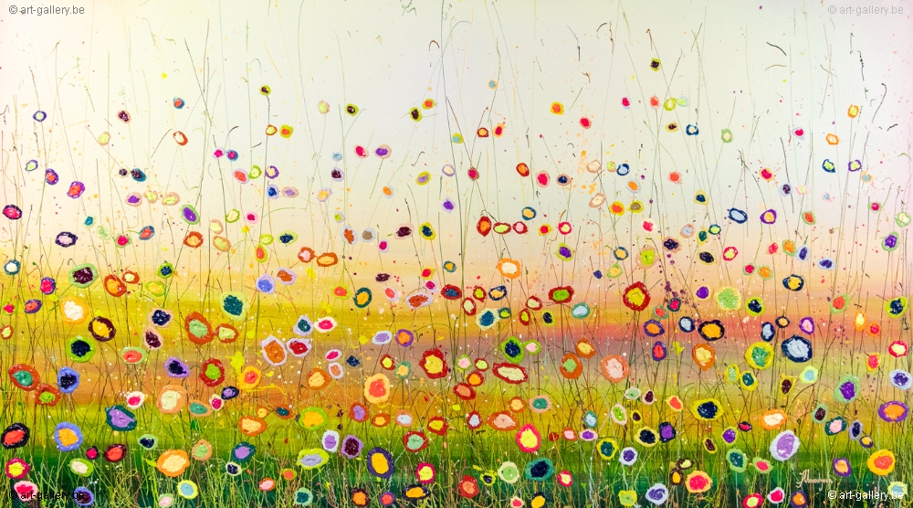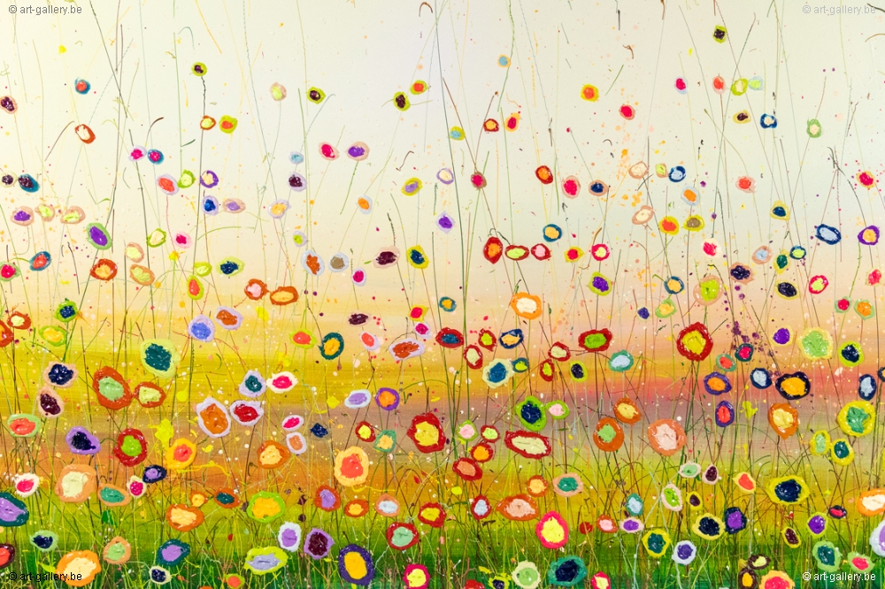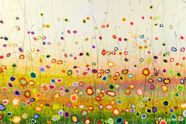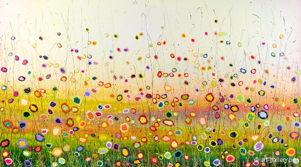 The original painting is thickly set up with acrylic paint and has a beautiful color combination. The playfulness, cheerfulness and vibrant colors that Yulia works with are truly beautiful and worthwhile to come and see for real. The works are stretched on the thick stretcher, which gives the painting even more body.