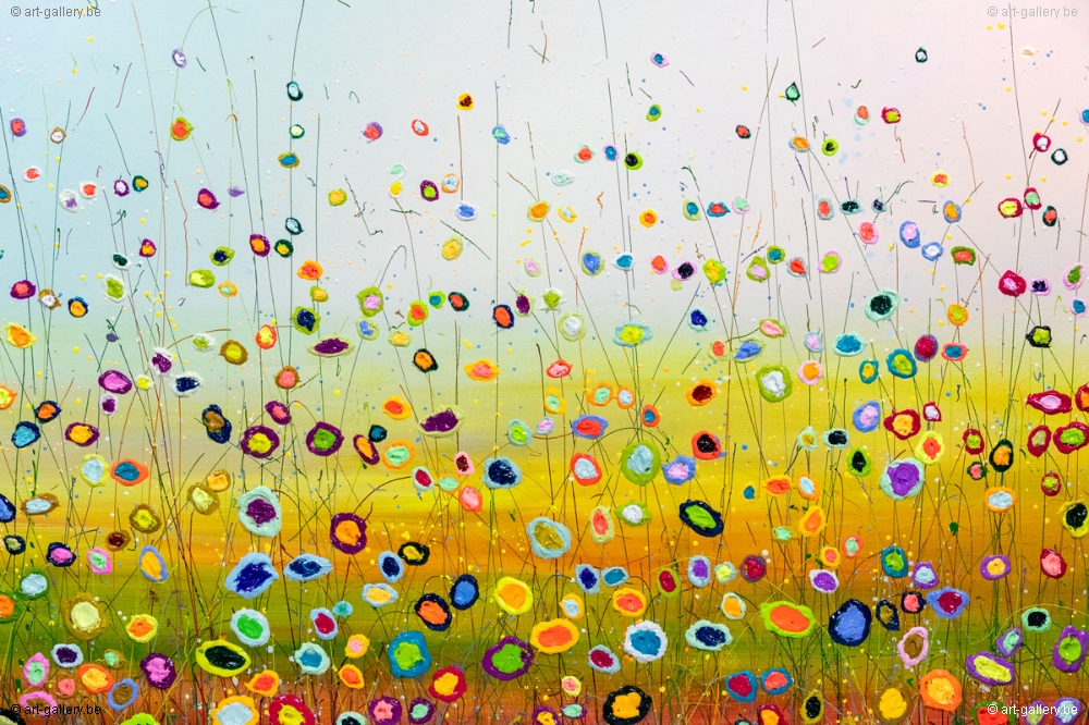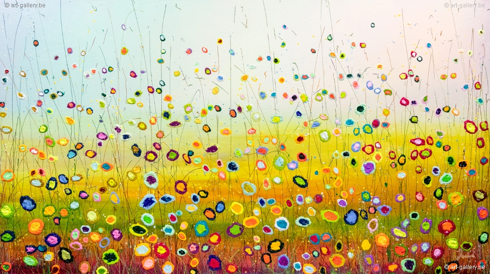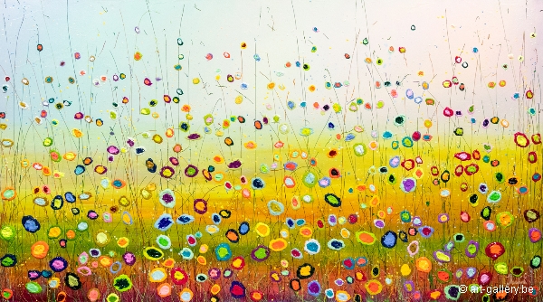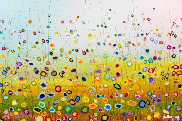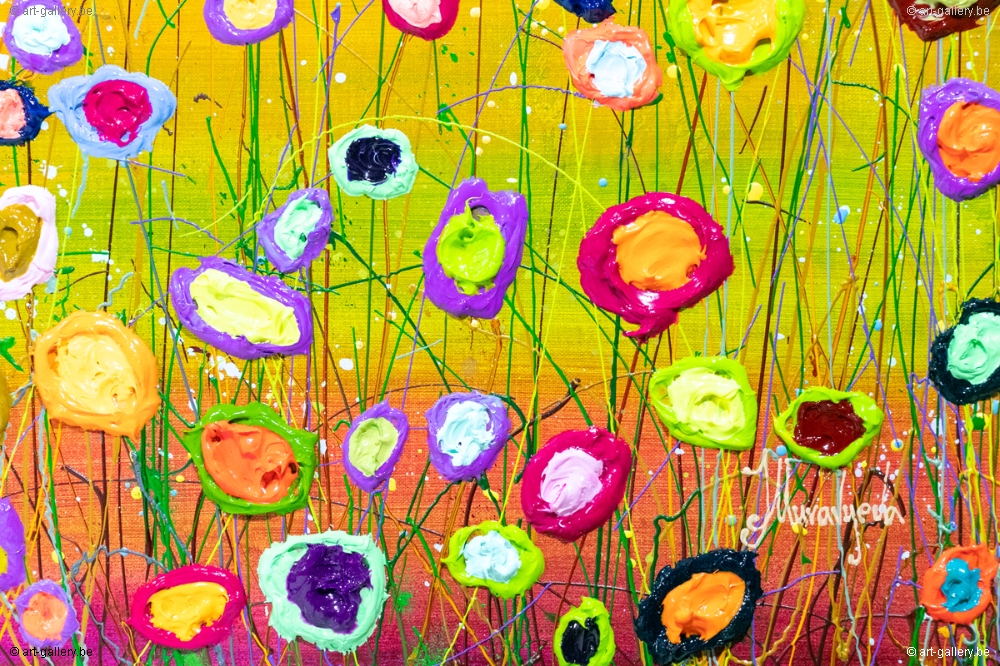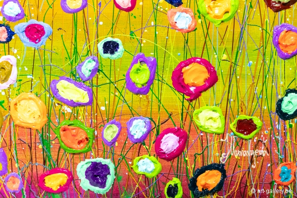 The original painting is thickly set up with acrylic paint and has a beautiful color combination. The playfulness, cheerfulness and vibrant colors that Yulia works with are truly beautiful and worthwhile to come and see for real. The works are stretched on the thick stretcher, which gives the painting even more body.