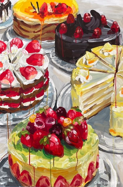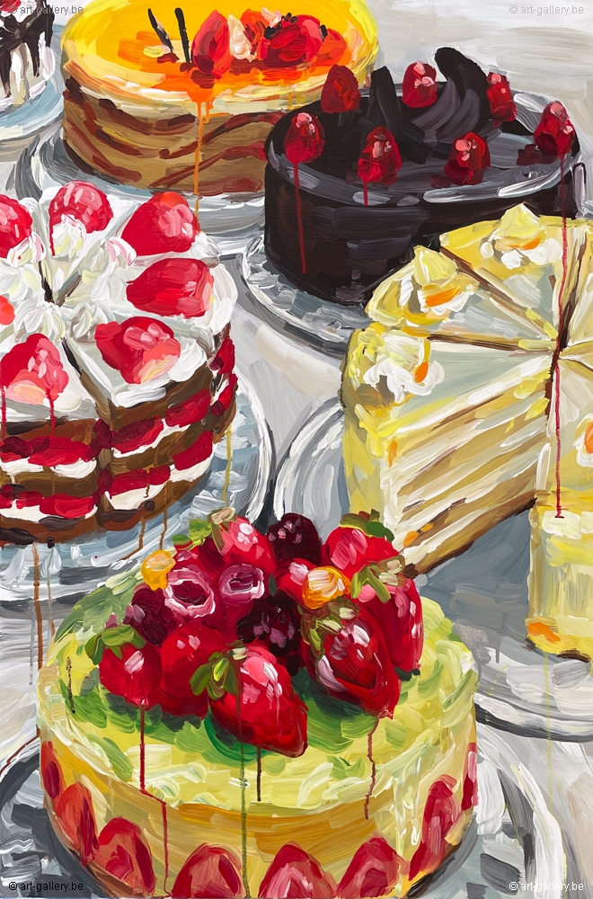 Original acrylic painting on canvas, signed on the back by Alice De Vliegher. The work comes from the Pastry shop series.