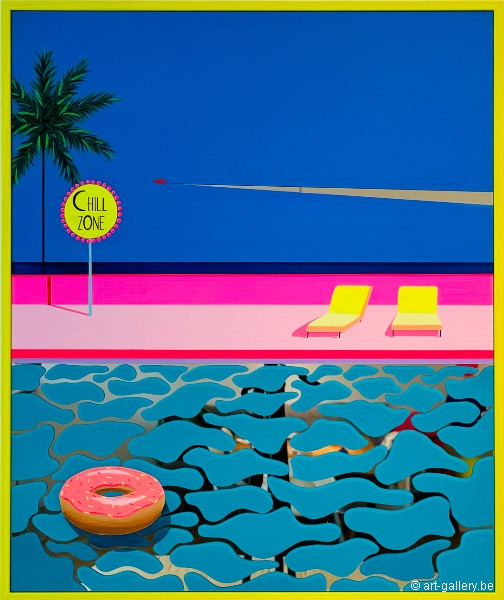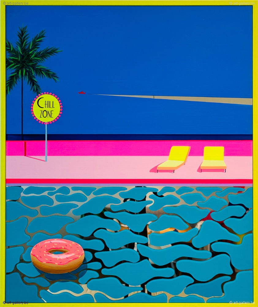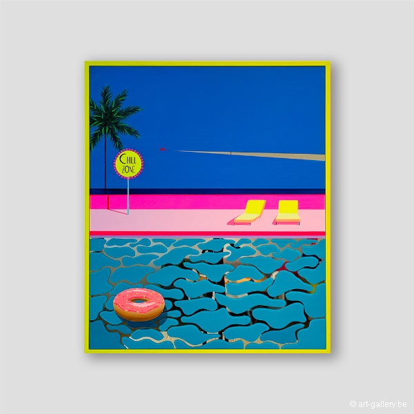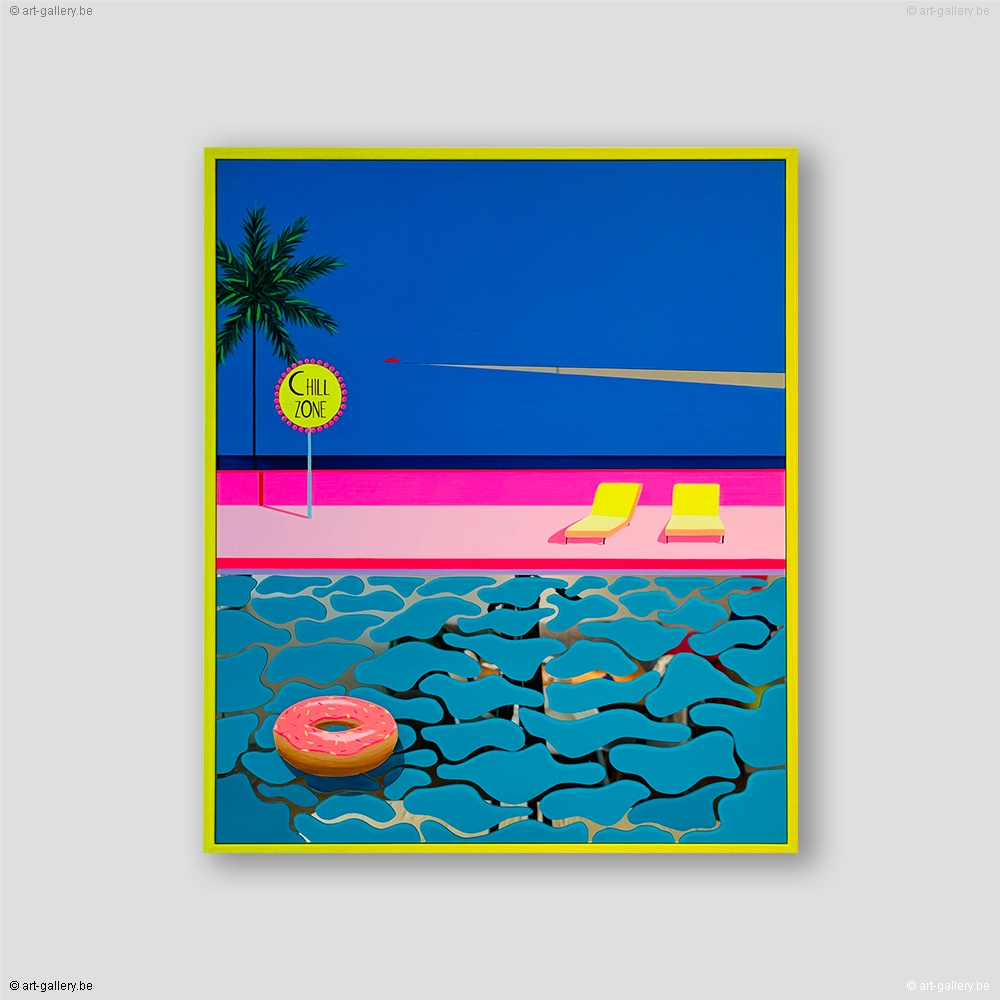 Extra info: Original acrylic painting on Plexi mirror. The work is framed by a light wood frame. Without knowing where we are, nor without knowing what will happen next, we find ourselves in mysteriously colorful places. Calm, serene spaces that seem lost in time and devoid of life. And yet... Then a movement arises and the mirror surfaces begin to animate the paintings thanks to the reflections of the light.