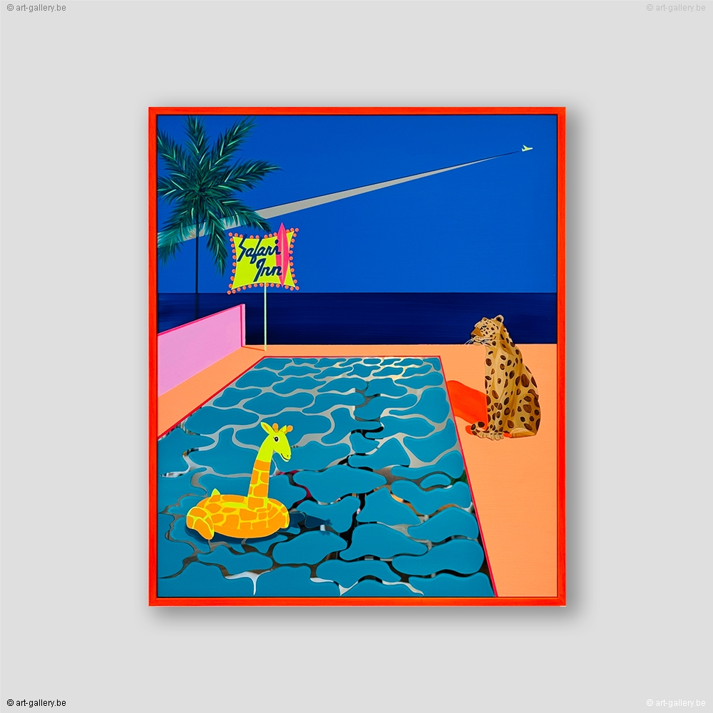 Original acrylic painting on Plexi mirror. The work is framed by a light wood frame. Without knowing where we are, nor without knowing what will happen next, we find ourselves in mysteriously colorful places. Calm, serene spaces that seem lost in time and devoid of life. And yet... Then a movement arises and the mirror surfaces begin to animate the paintings thanks to the reflections of the light.