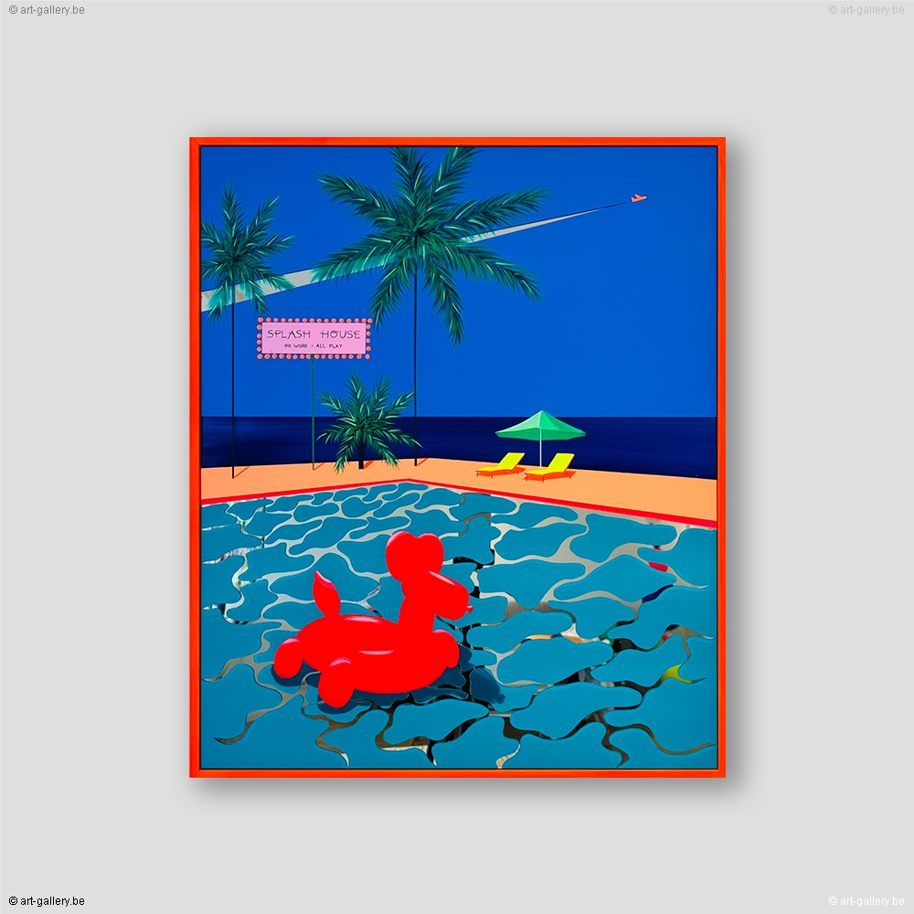 Original acrylic painting on Plexi mirror. The work is framed by a light wood frame. Without knowing where we are, nor without knowing what will happen next, we find ourselves in mysteriously colorful places. Calm, serene spaces that seem lost in time and devoid of life. And yet... Then a movement arises and the mirror surfaces begin to animate the paintings thanks to the reflections of the light.