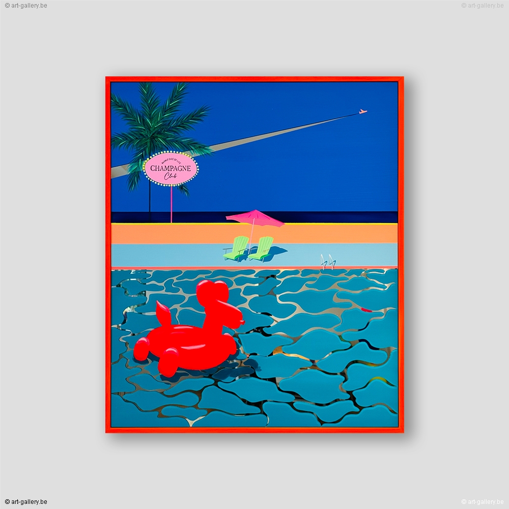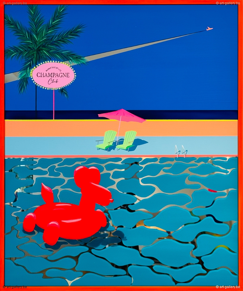Extra info: Original acrylic painting on Plexi mirror. The work is framed by a light wood frame. Without knowing where we are, nor without knowing what will happen next, we find ourselves in mysteriously colorful places. Calm, serene spaces that seem lost in time and devoid of life. And yet... Then a movement arises and the mirror surfaces begin to animate the paintings thanks to the reflections of the light.