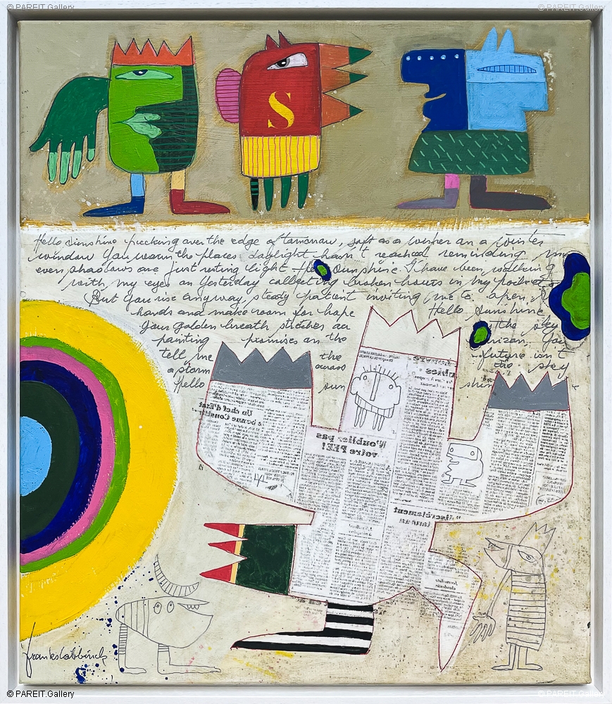 Original painting on canvas, signed on the reverse. The work is presented in a white floating frame.